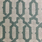 Fully reversible, soft-textured fabric with woven trellis pattern in a turquoise and white, spa-toned color palette.