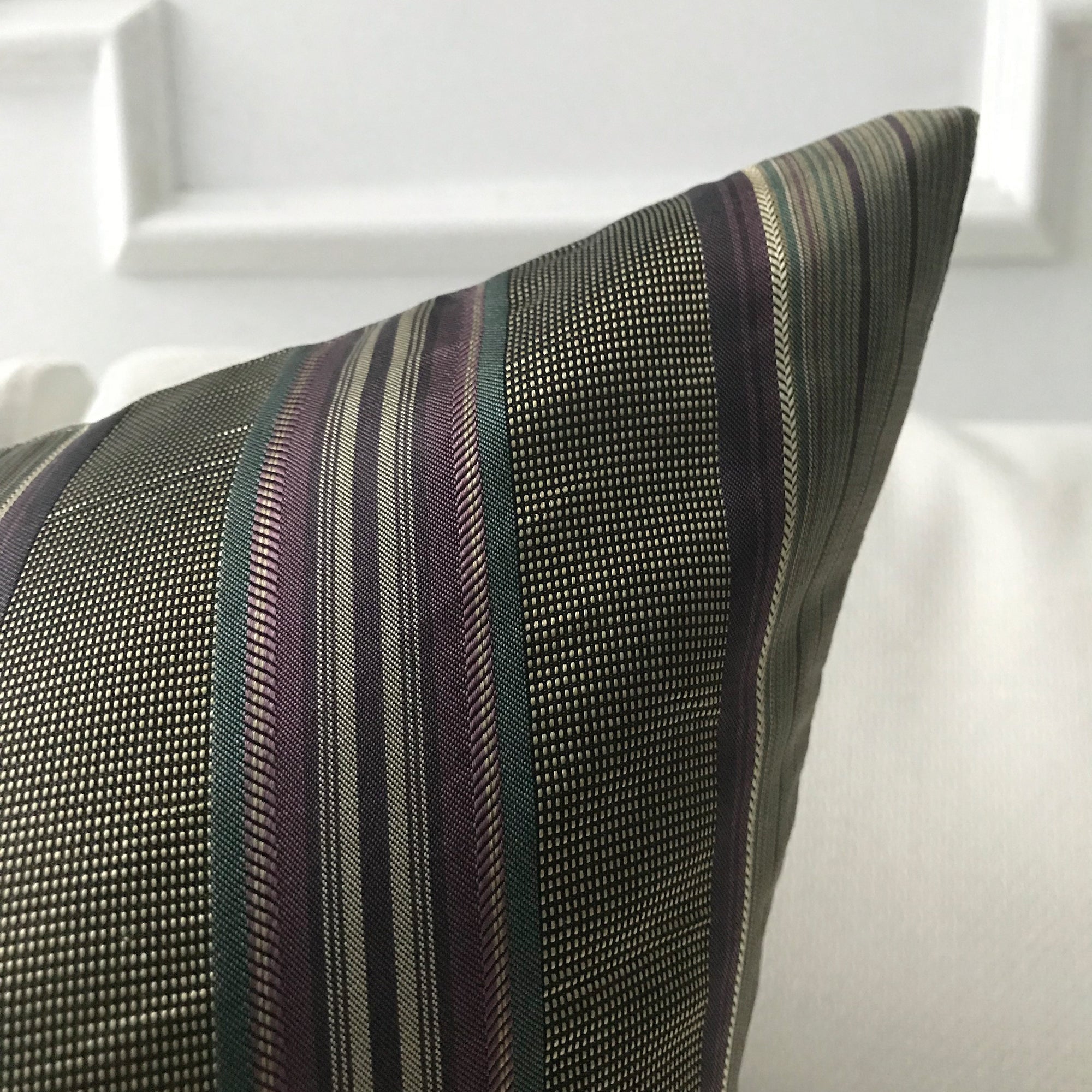 Add a bold yet sophisticated touch to your space with this gentlemanly striped throw pillow cover. Featuring a refined stripe pattern in deep green and dark purple, this pillow cover brings a rich, tailored look to any décor. Perfect for styling on a sofa, bed, or accent chair, its striking color combination complements both classic and contemporary interiors.