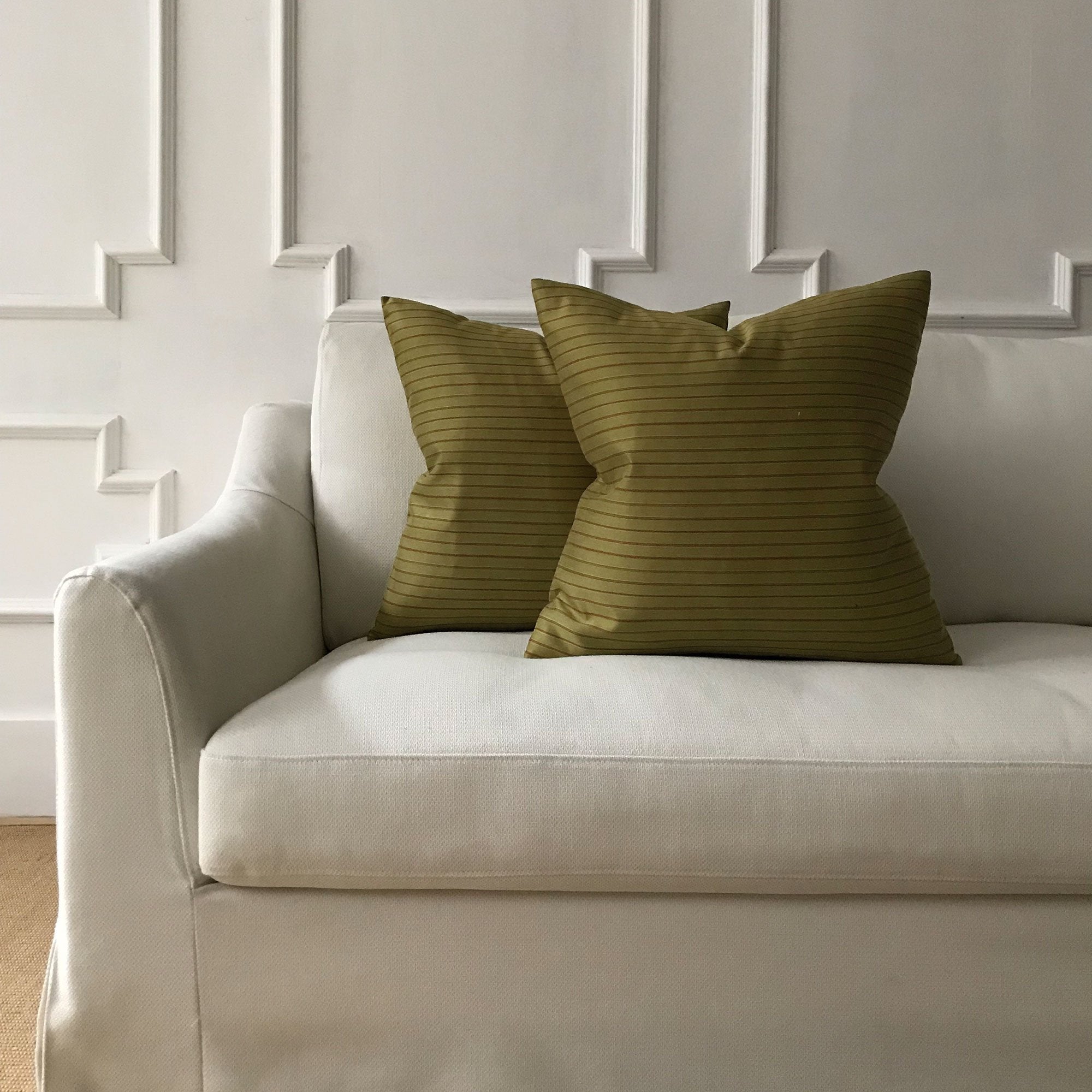 Sage and Rust Pinstriped Throw Pillow Cover 22x22