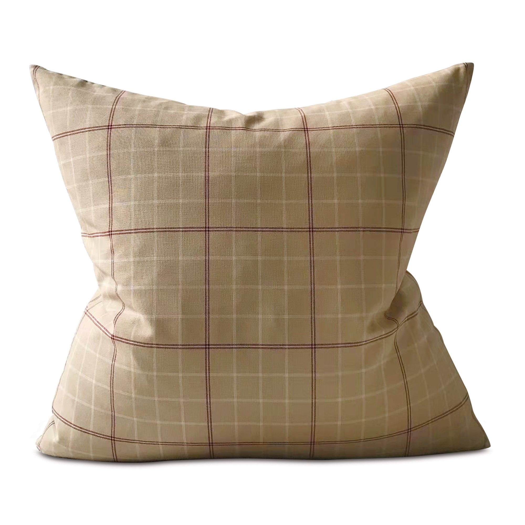 Tan Windowpane Check Throw Pillow Cover 24x24
