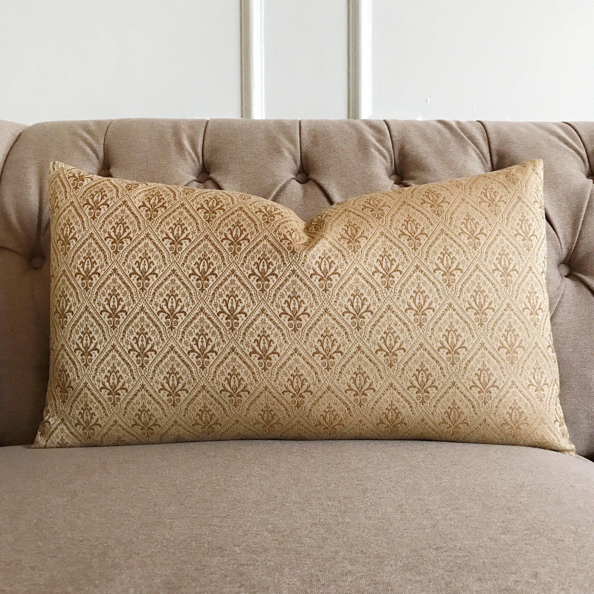 French Royal Gold Trellis Jacquard Luxury Woven Decorative Pillow Cover 15x26