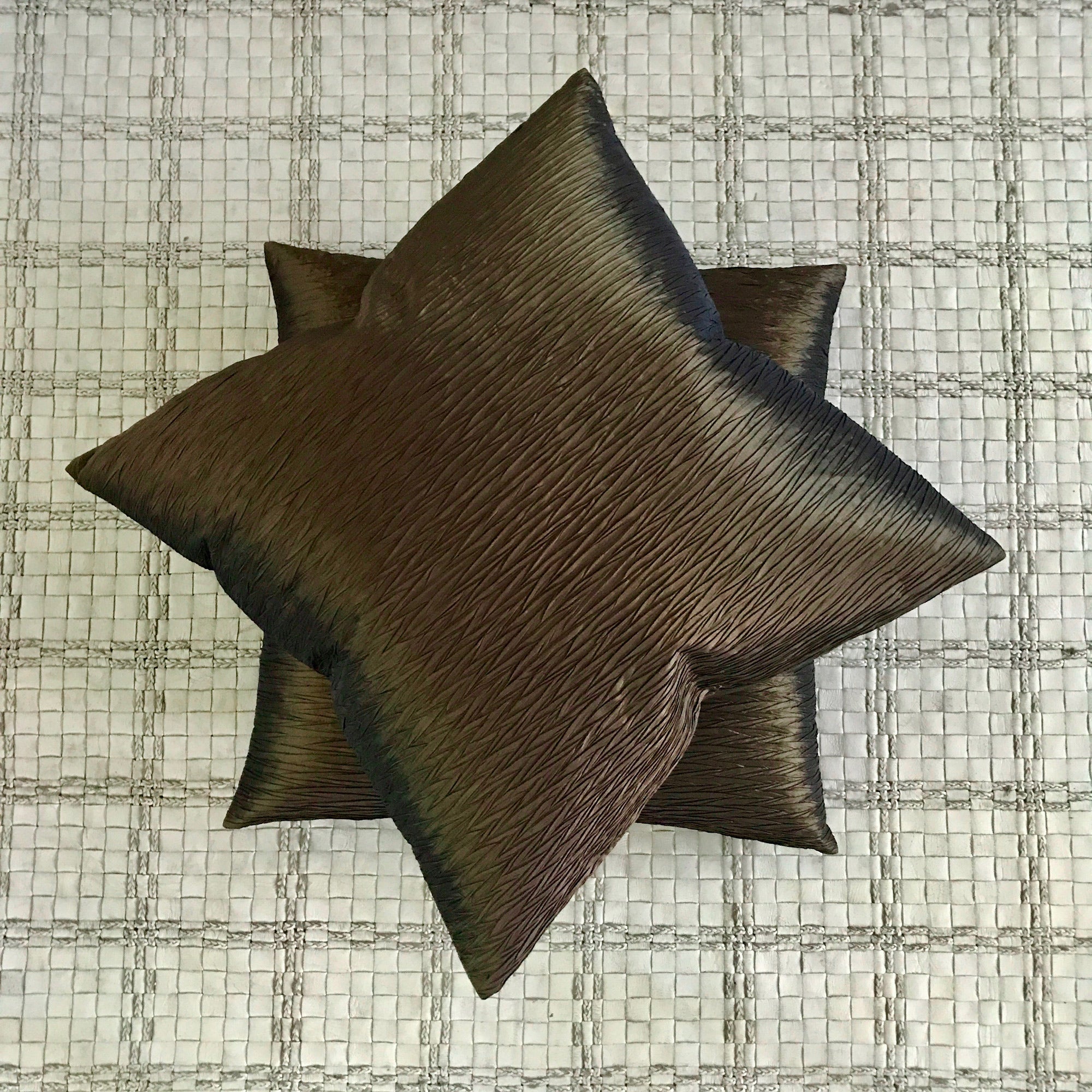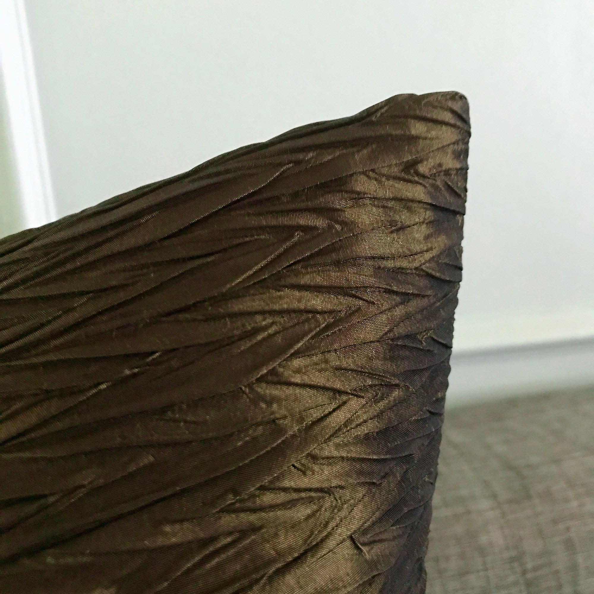 Metallic Forest Green Pleated Silk Lumbar Pillow Cover 15x26