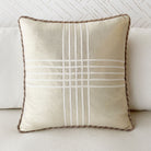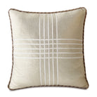 - Metallic throw pillow with a criss-cross ribbon application