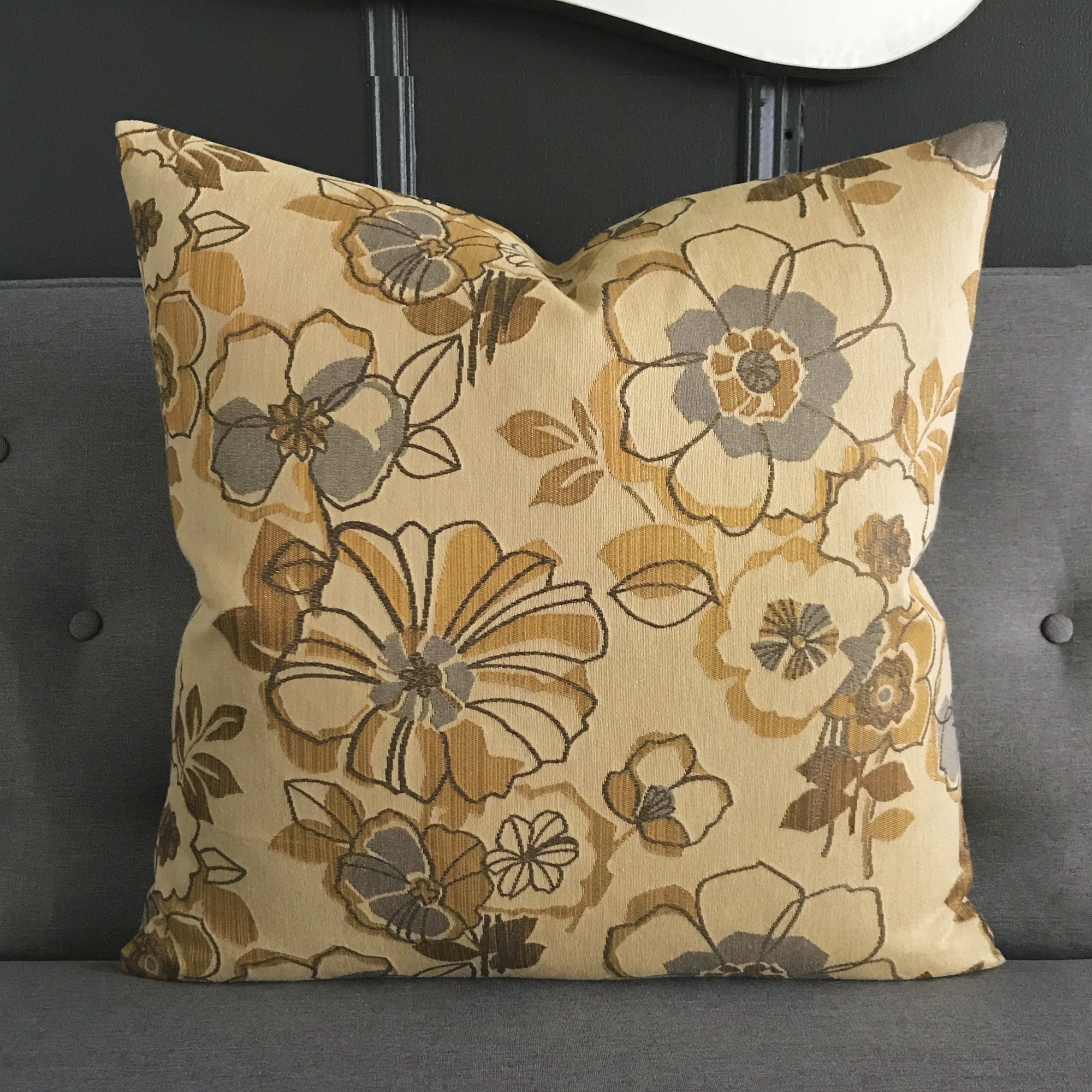 ⁌ Add a touch of luxury to your decor with the Metallic Woven Floral Throw Pillow Cover. This 22x22 pillow cover features an elegant floral pattern woven in a lustrous gold, bringing a sophisticated shimmer and timeless style to any room. The intricate metallic design adds depth and texture, making it a striking accent piece that enhances both classic and contemporary interiors. Perfect for sofas, beds, or accent chairs, this cover creates a warm, inviting atmosphere with its rich tones and refined floral detailing.