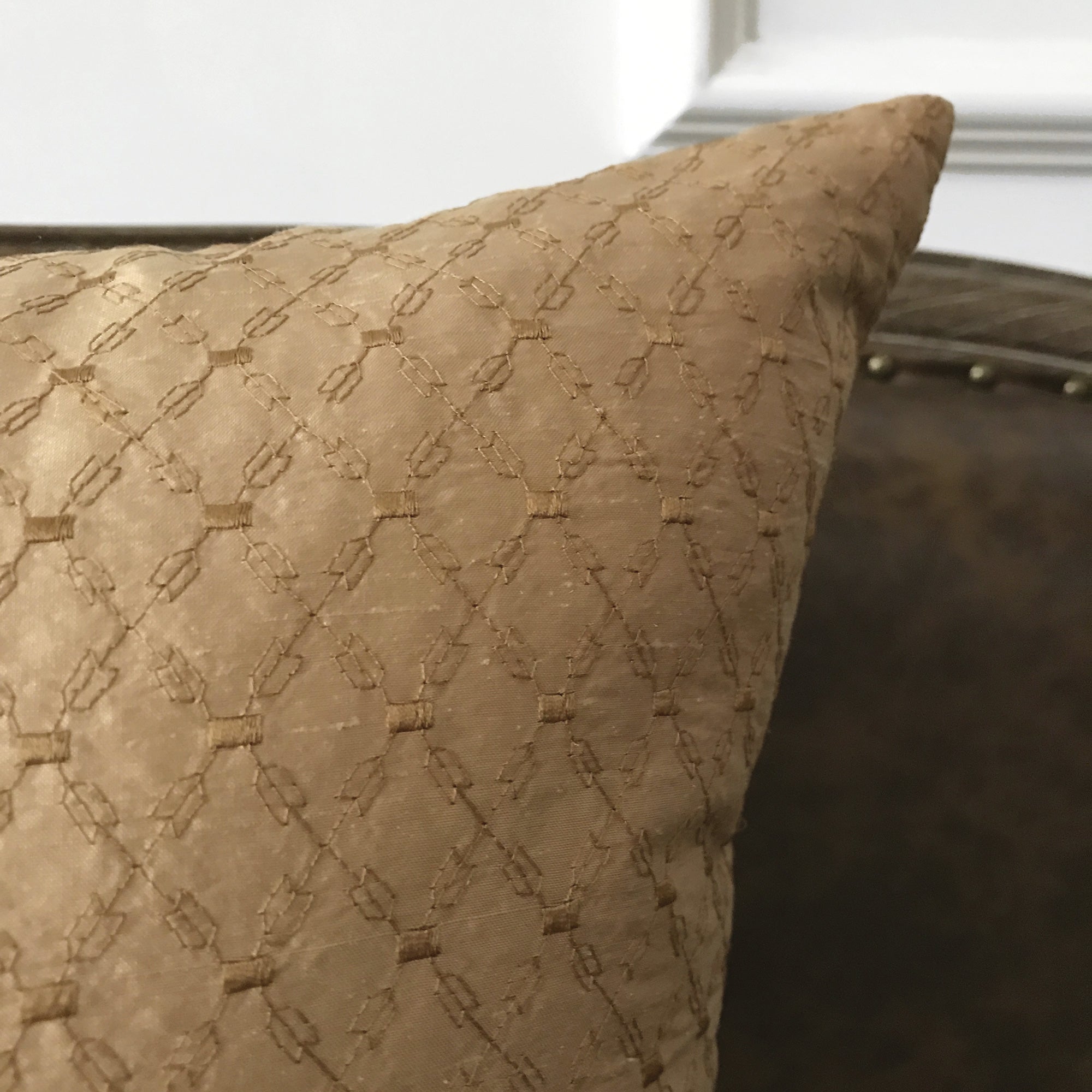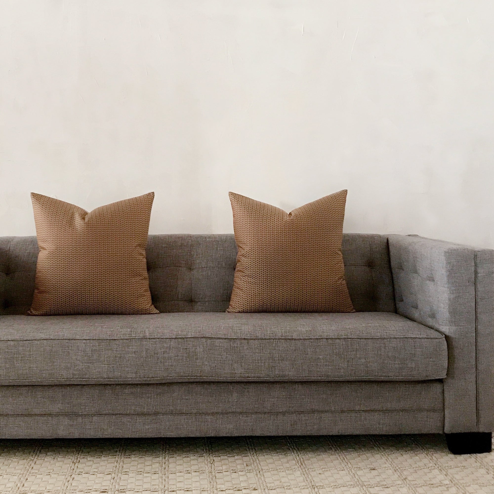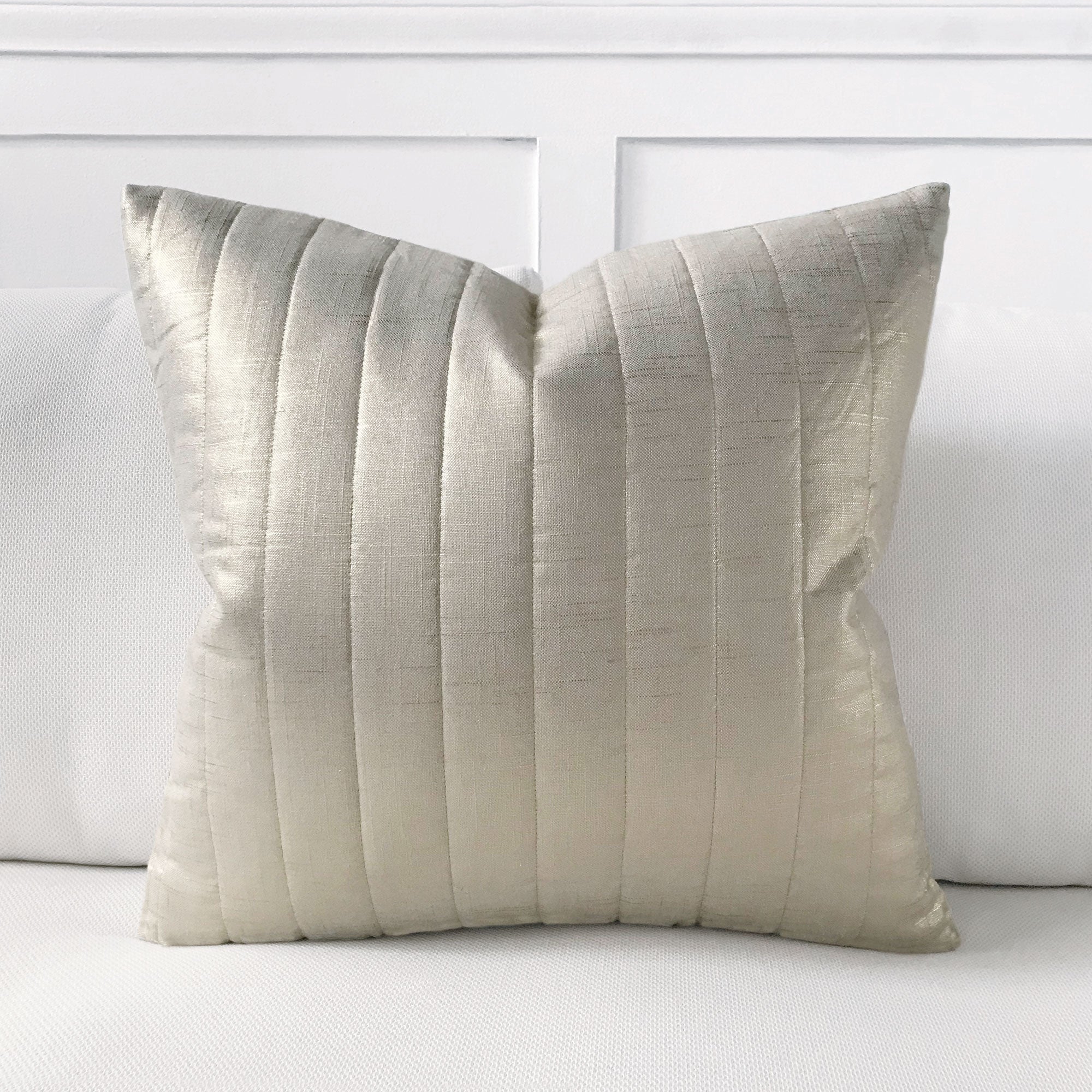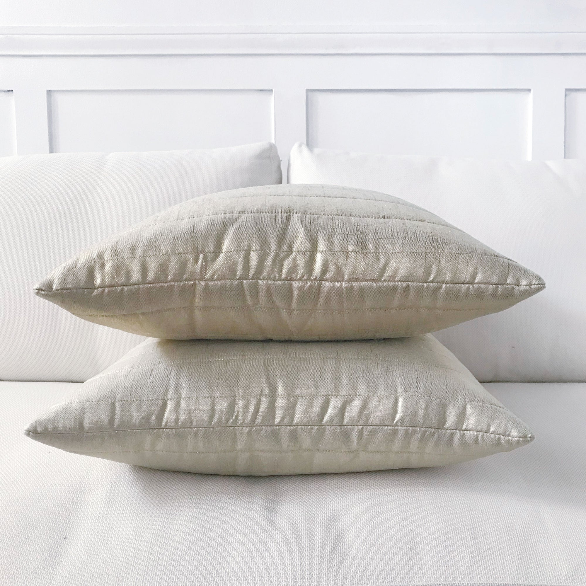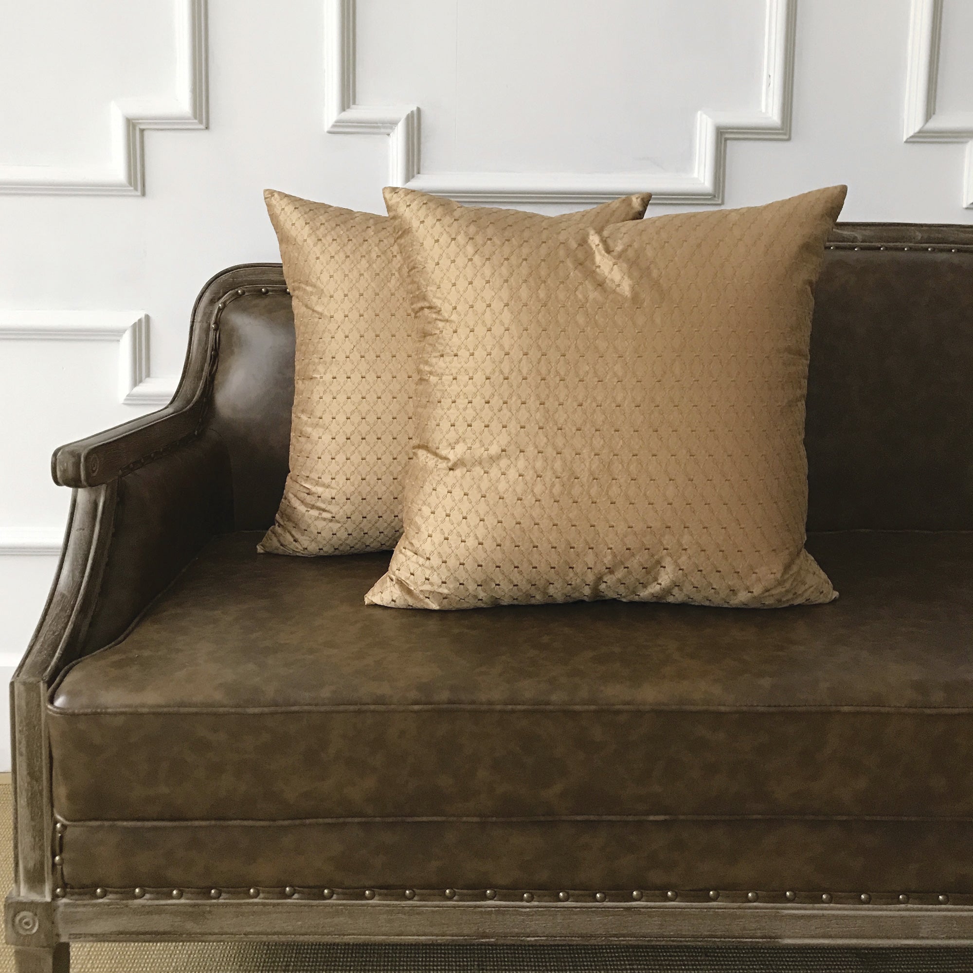 From a functional point of view, metallic pillow covers with texture tend to hide wrinkles better than smooth fabrics, which makes them easier to keep fresh. For a sharp, finished look, always pair with properly sized inserts.