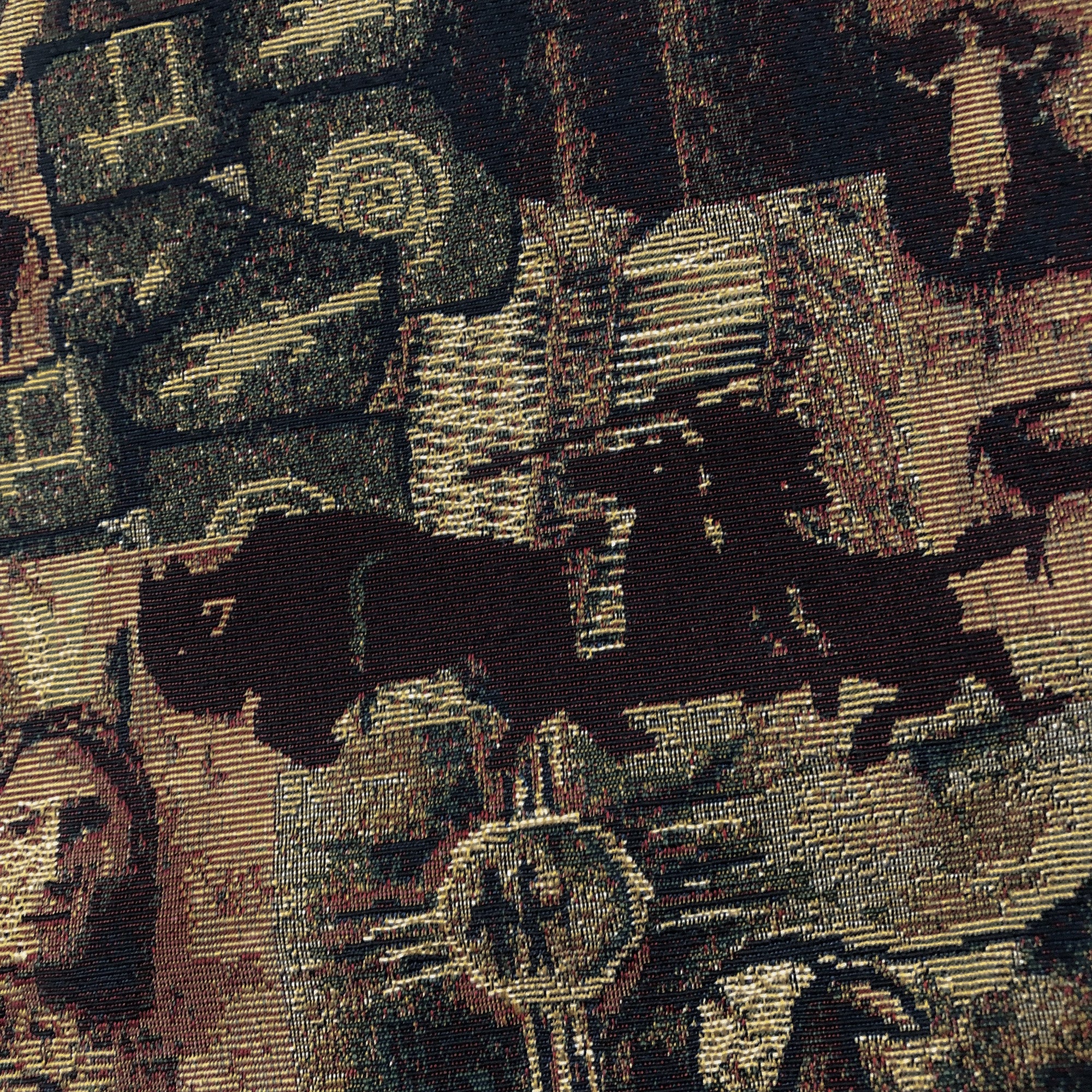 Adorn any interior with this Petroglyph Theme Jacquard Upholstery Fabric 54", perfect for arts and crafts, DIY, upholstery, home decorating, and more. Give your bedding, chairs, cushions, windows and more a fresh new look with our selection of high quality fabrics curated by a team of trend leading designers. This luxurious petroglyph-inspired jacquard upholstery fabric in brown meets flair with versatility, offering the perfect personal touch for any Navajo aesthetic. Designed and crafted by skilled textile artisans this fabric is made to last and never compromises on quality. All fabric is sold by the yard in 1-yard increments. Unfortunately, we do not accept returns on fabric orders but swatches are available.