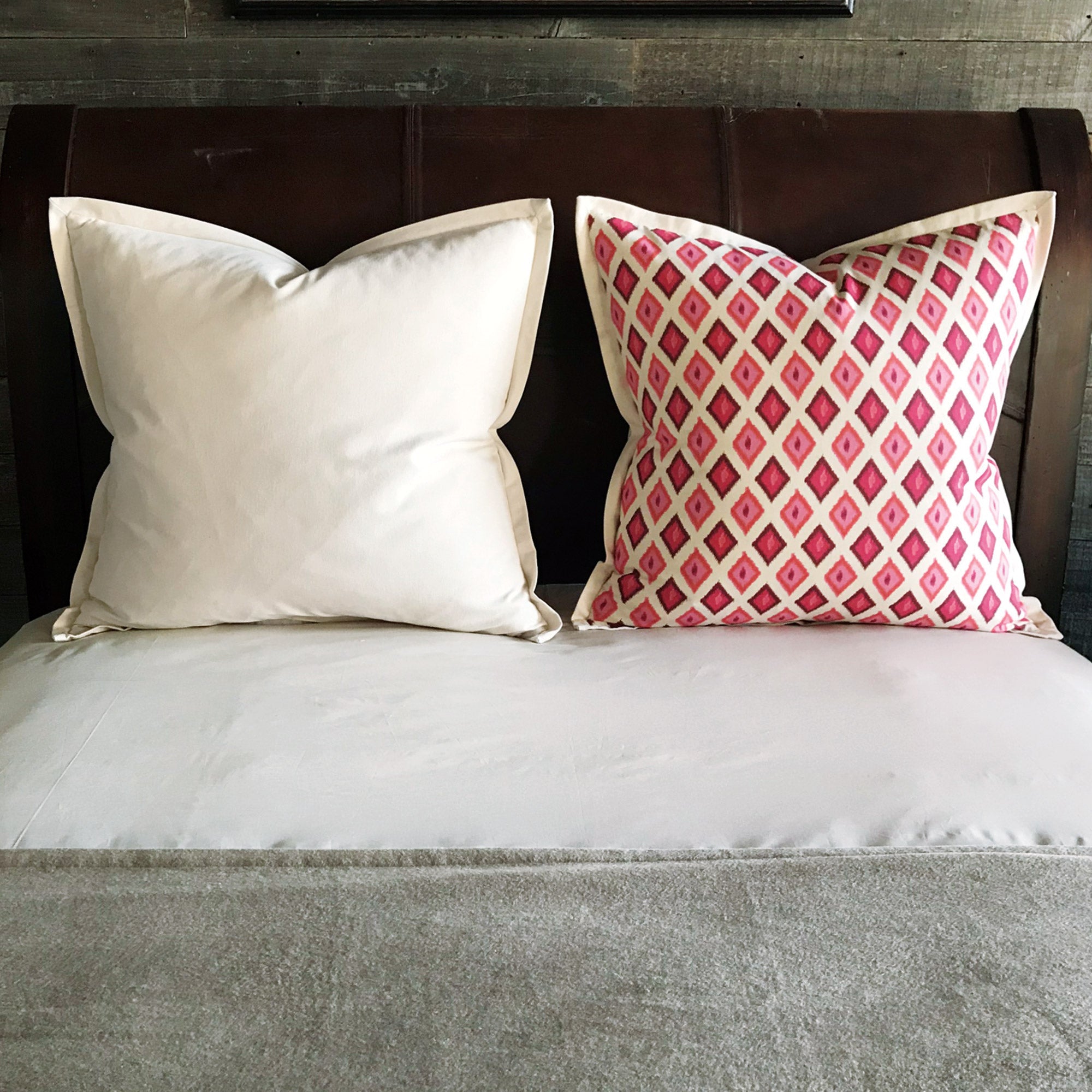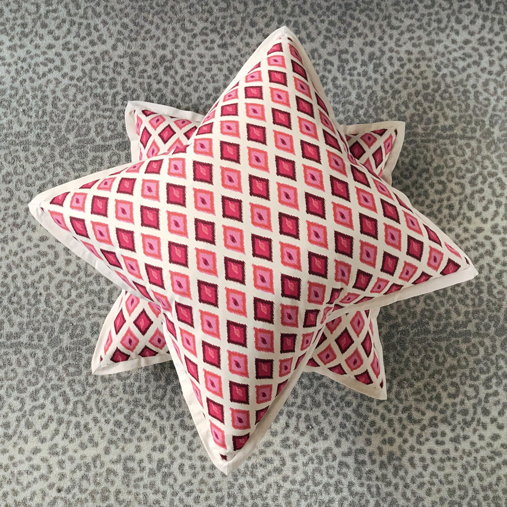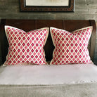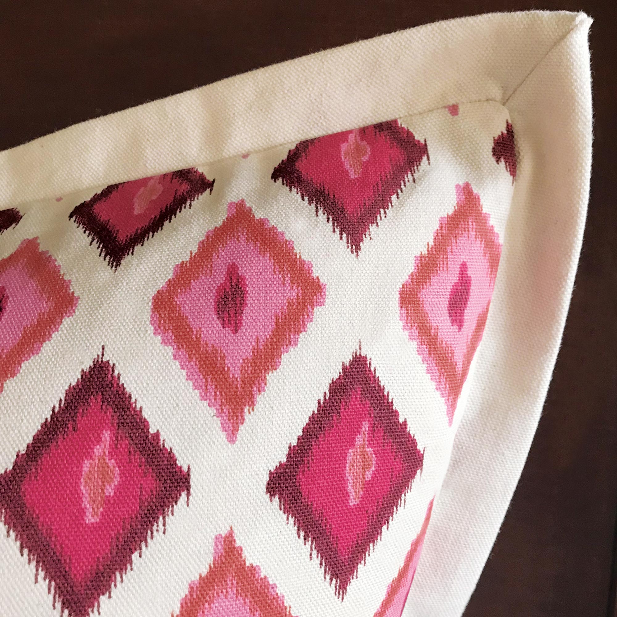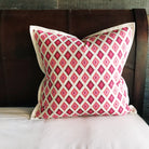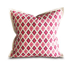 - Euro sham cover with a pink and orange ikat-inspired diamond trellis pattern
