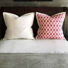 ⁌ Add color and energy to your bedding with the Pink Ikat Diamond Trellis Euro Sham. Featuring a lively geometric diamond pattern in vibrant pink and orange hues, this 27x27 Euro sham brings a playful yet sophisticated touch to modern and eclectic interiors. The design is backed in a solid off-white cotton fabric for contrast, and finished with a flange edge and discreet zipper for a polished, easy-care look. Proudly made in the USA.