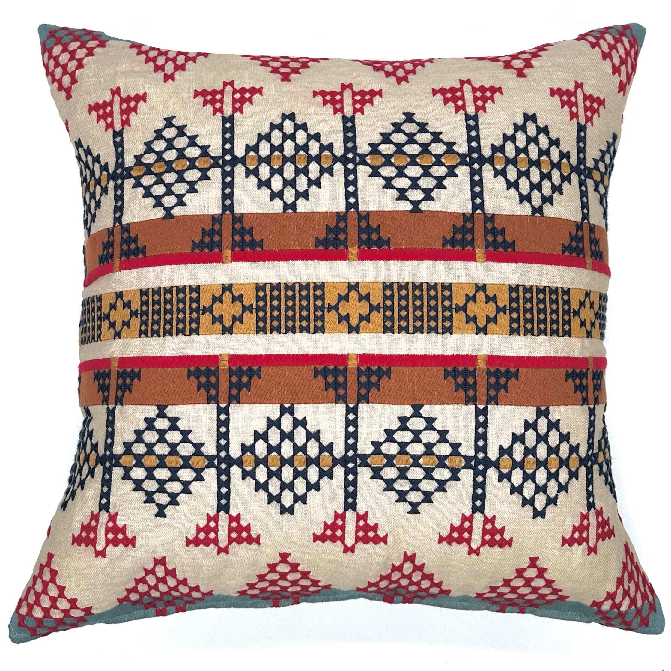 ⁌ Add bold texture and cultural flair to your home with this 22x22 embroidered throw pillow cover, featuring a striking multicolor Navajo-inspired pattern. With intricate embroidery and a vibrant mix of colors, this handcrafted piece brings depth, warmth, and artisan detail to bohemian, Southwestern, or eclectic interiors.