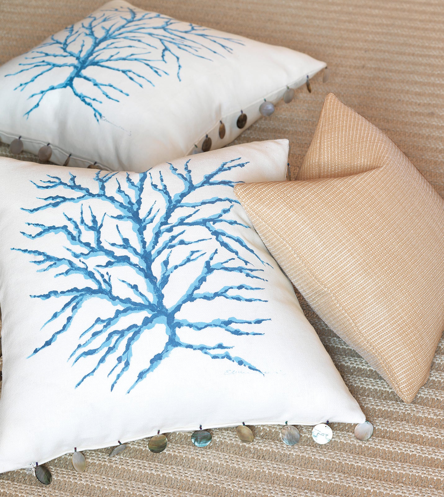 Hand-Painted Beach Coral Throw Pillow Cover 22x22