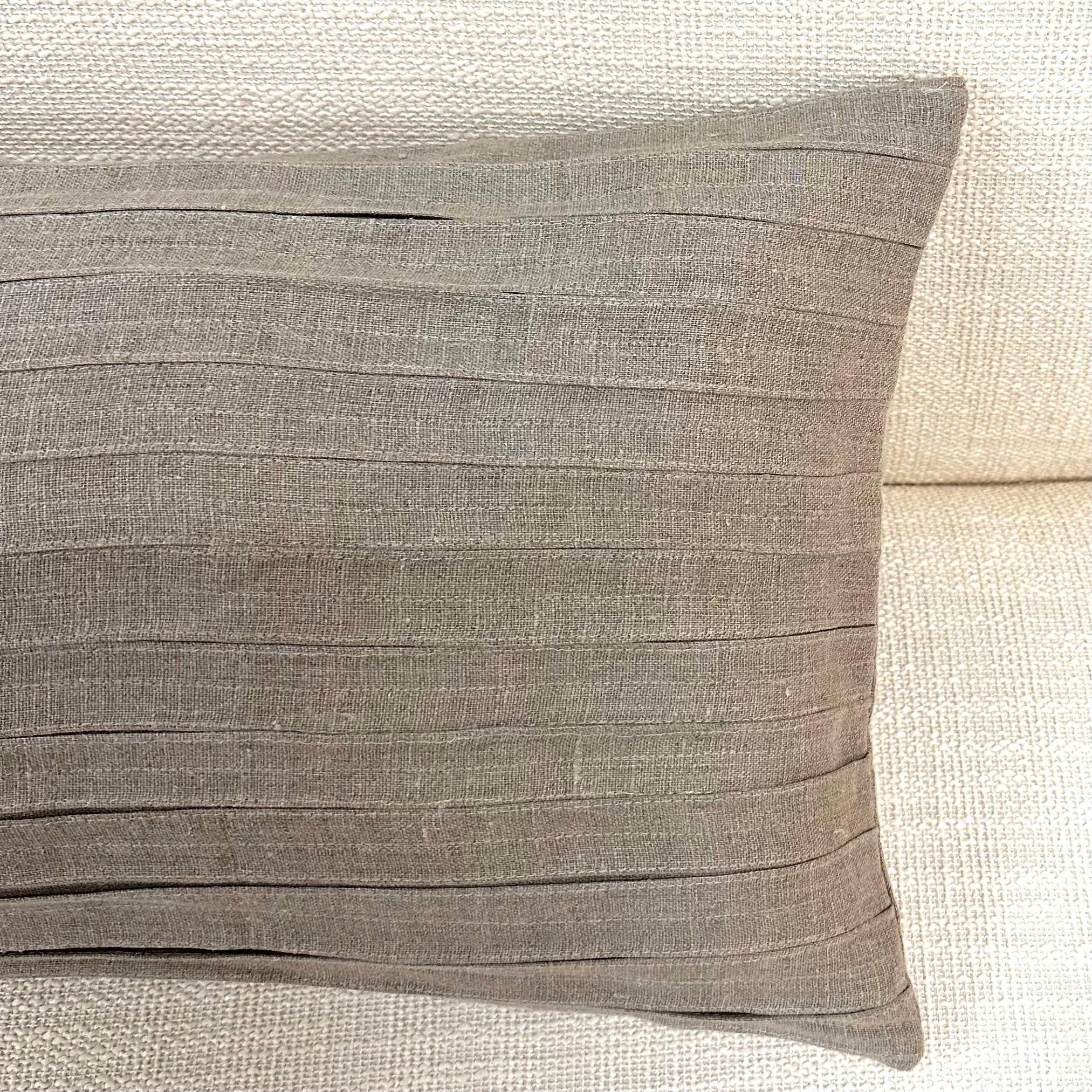 ⁌ Add understated elegance to your home with this 13x30 neutral linen lumbar pillow cover, featuring a clean stripe pattern and a modern pleated design on the front. Made from breathable, high-quality linen, this handcrafted decorative pillow cover blends natural texture with contemporary detail—perfect for minimal, modern, or transitional interiors.