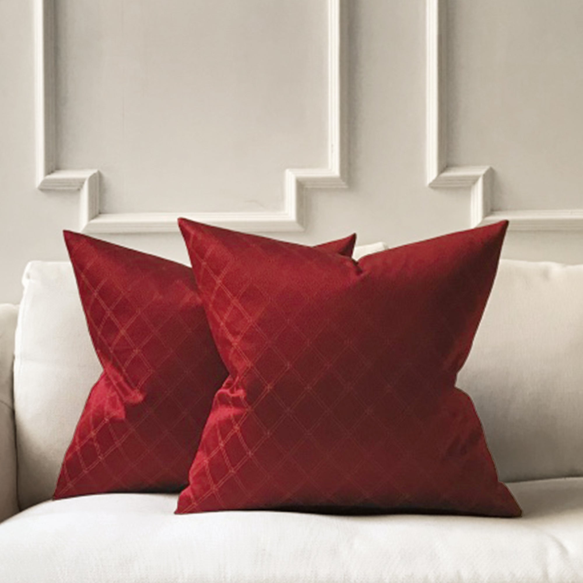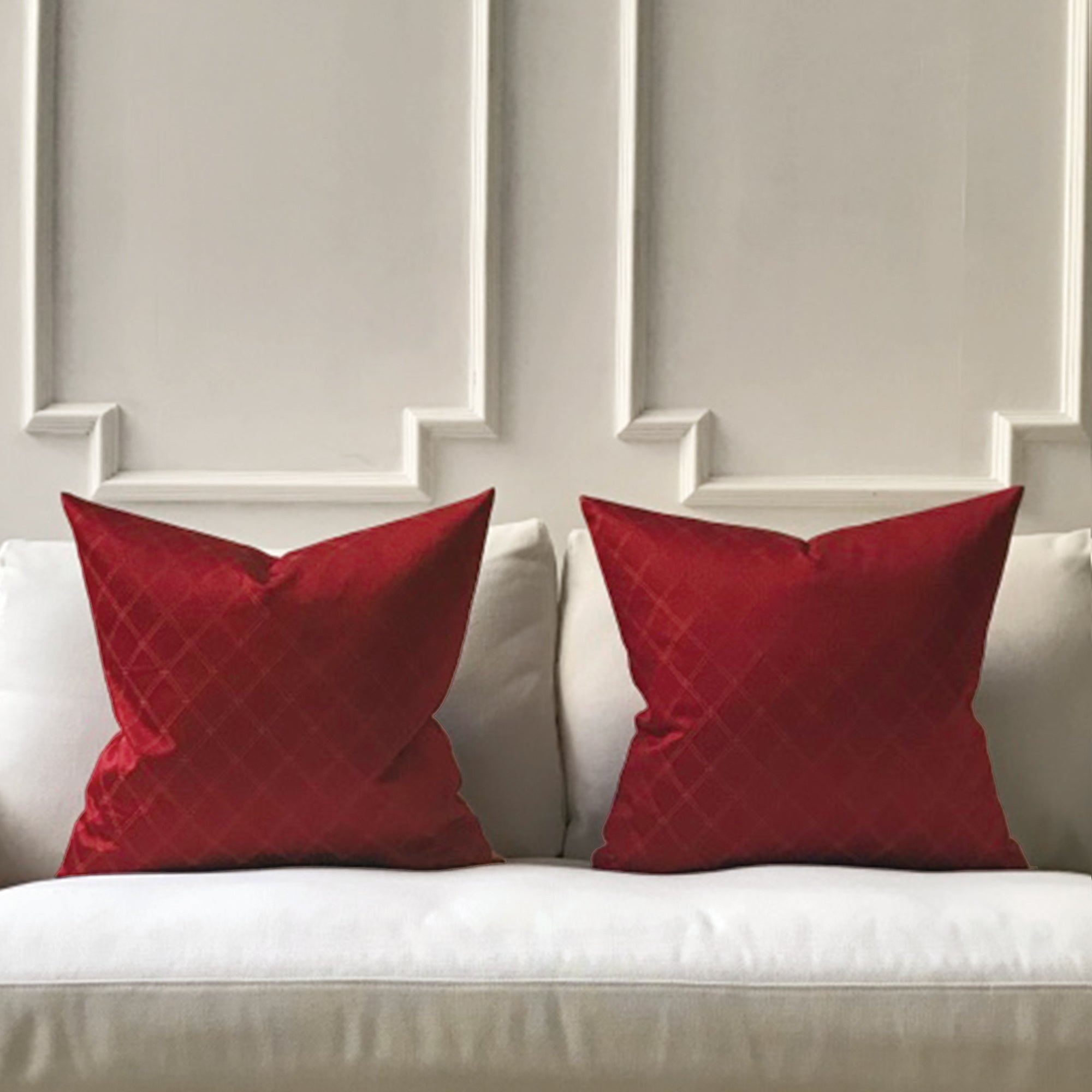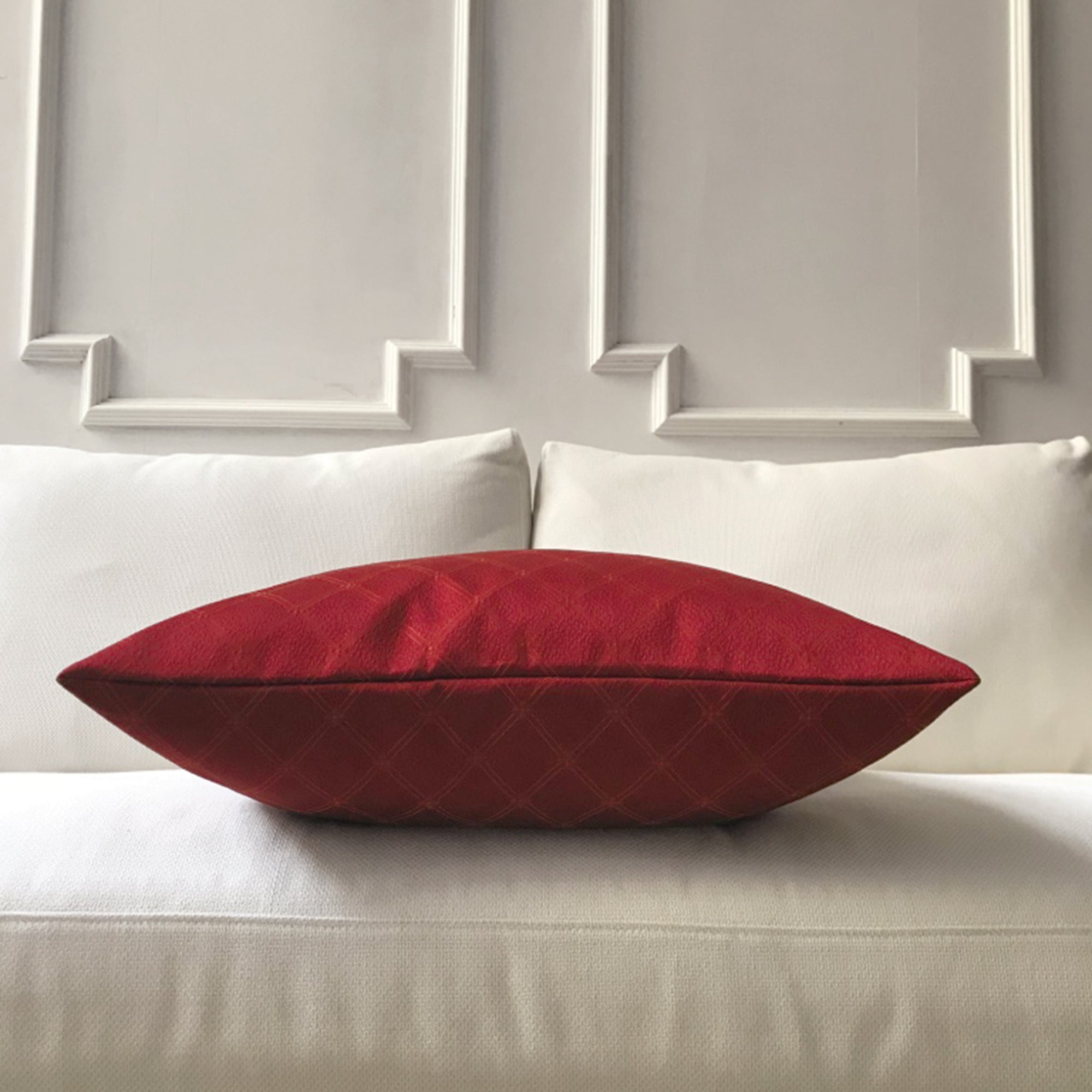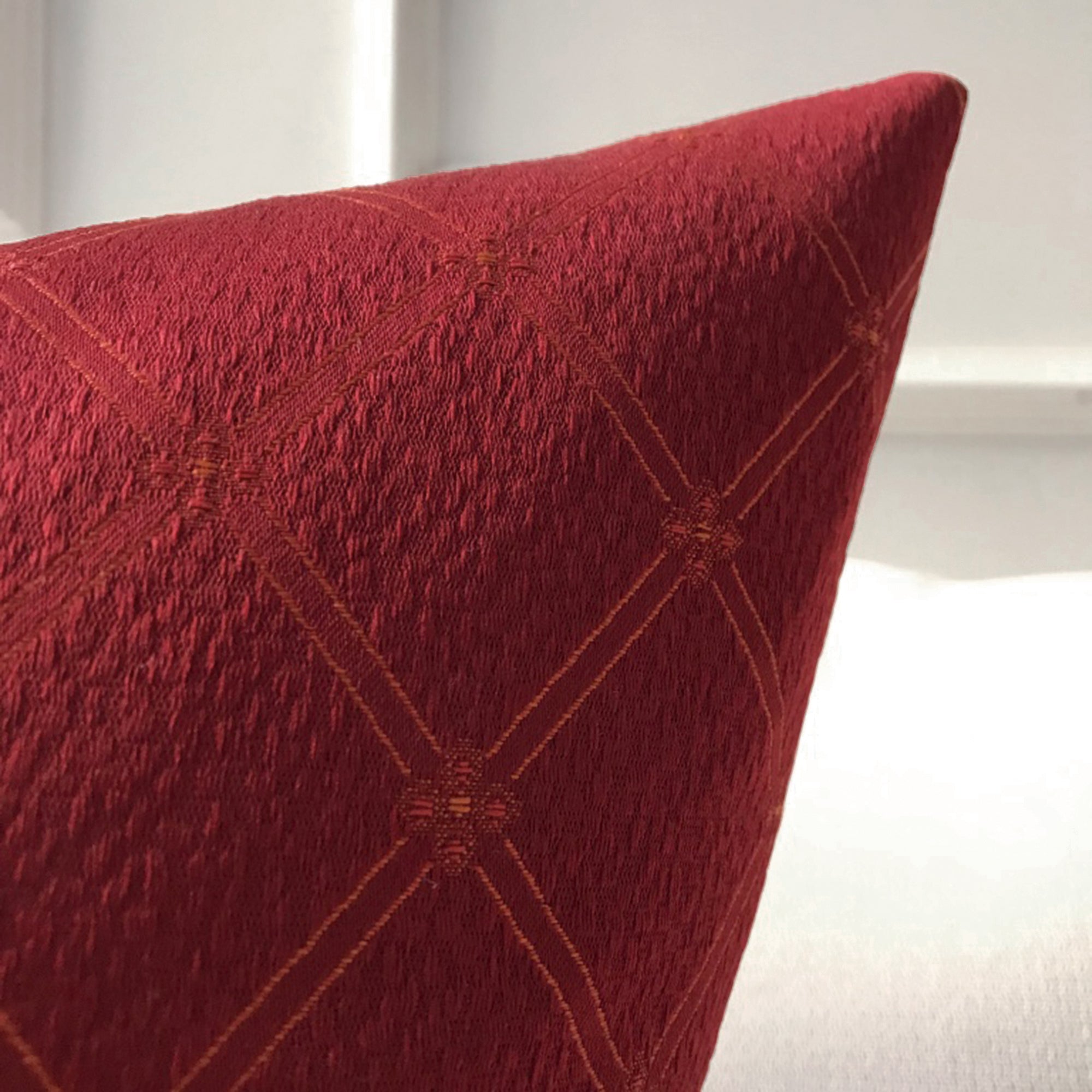 ⁌ Add a touch of elegance and rich texture to your space with this ruby diamond jacquard throw pillow cover. Featuring a sophisticated diamond trellis jacquard design with delicate floral detailing, this pillow cover brings depth and timeless charm to any décor. The vibrant ruby-red hue makes it a striking accent for sofas, beds, or accent chairs, complementing both traditional and modern interiors.
