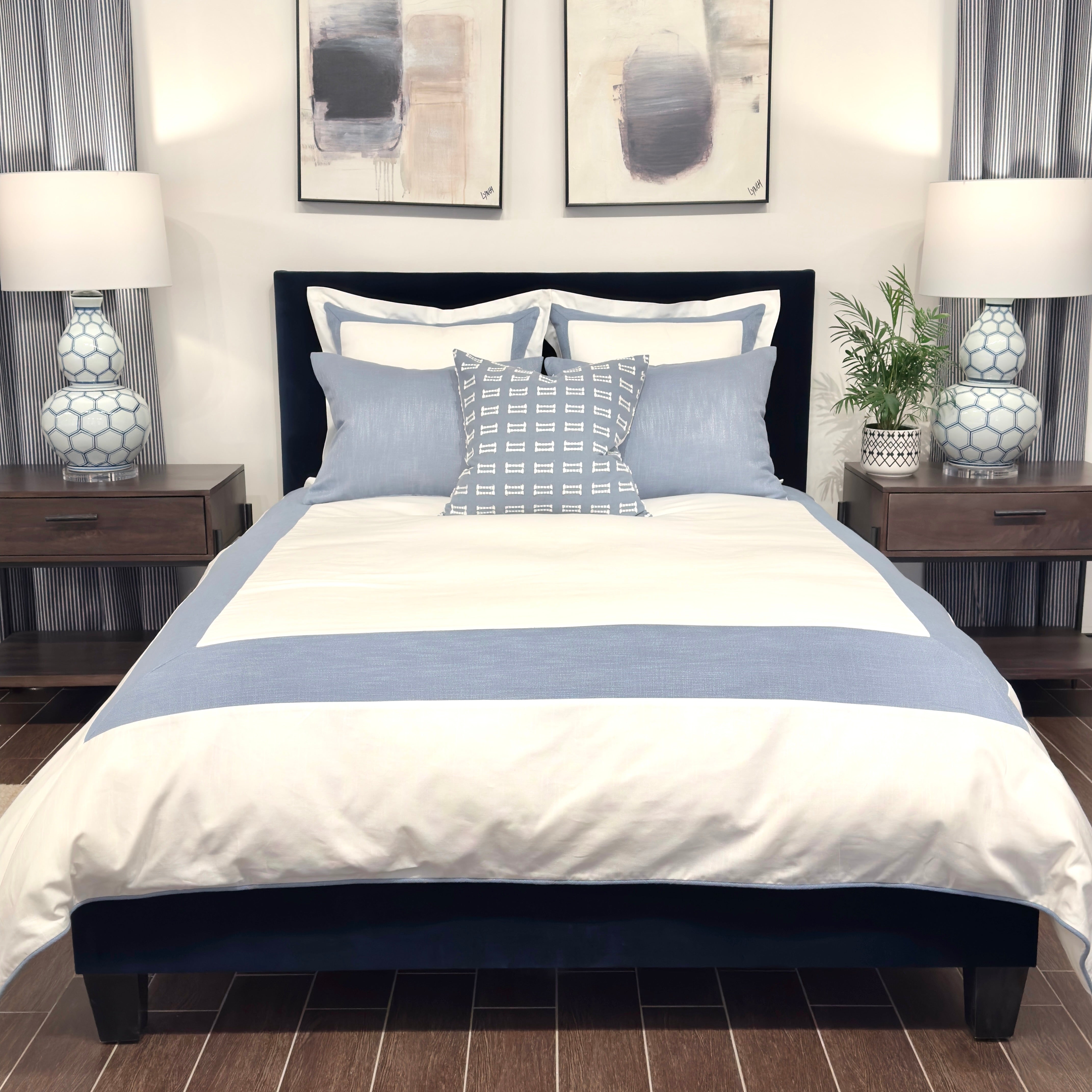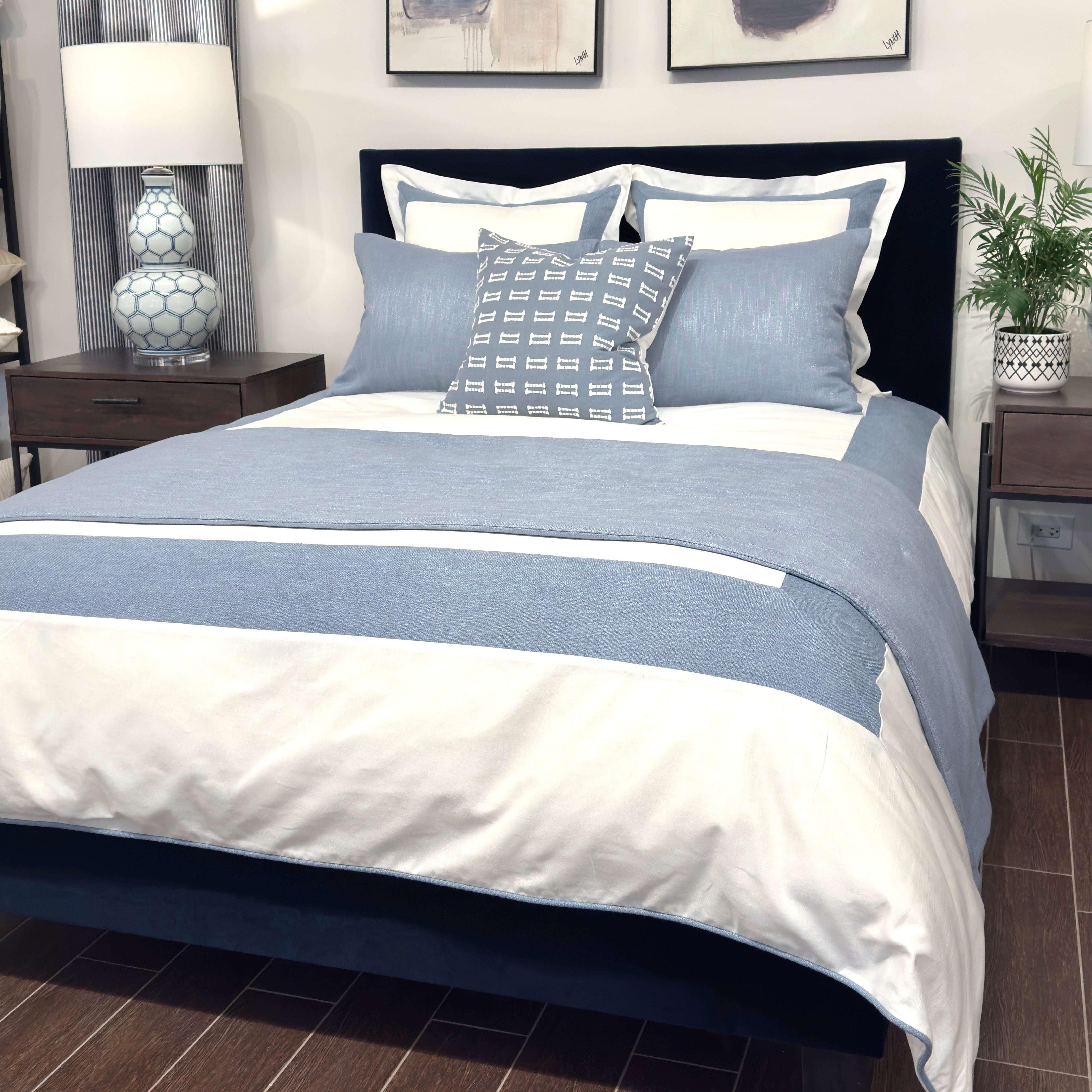 Our new white and blue bed set brings a calm, airy feel to the bedroom—easy to style, easy to love.