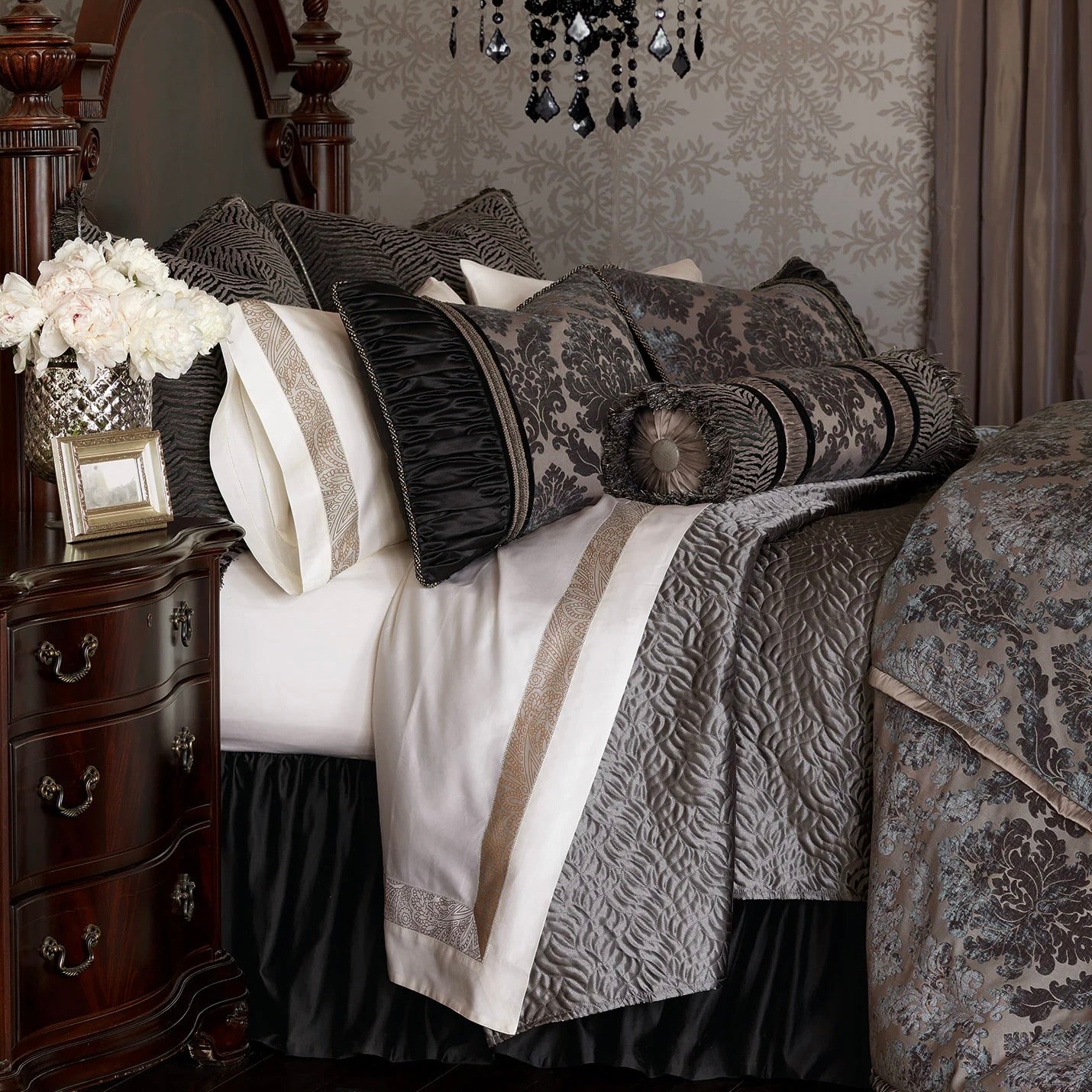 - Traditional textured damask duvet cover