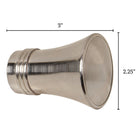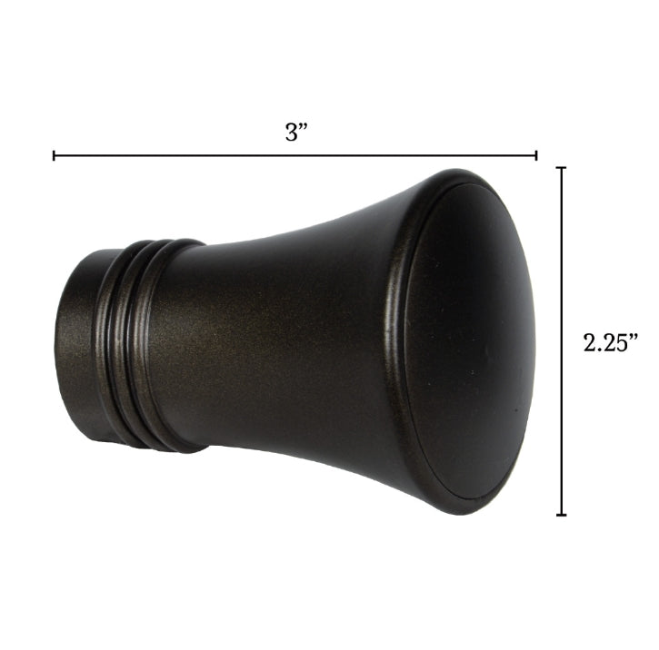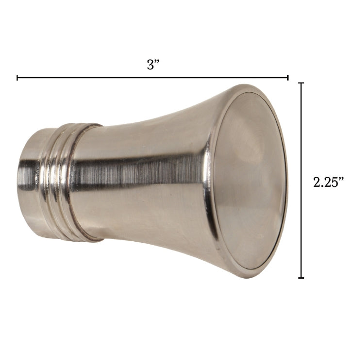 Metal finials featuring a tapered trumpet shape for a refined finishing detail. Adds warmth while keeping panels neatly in place and coordinating with the Metallo hardware collection.