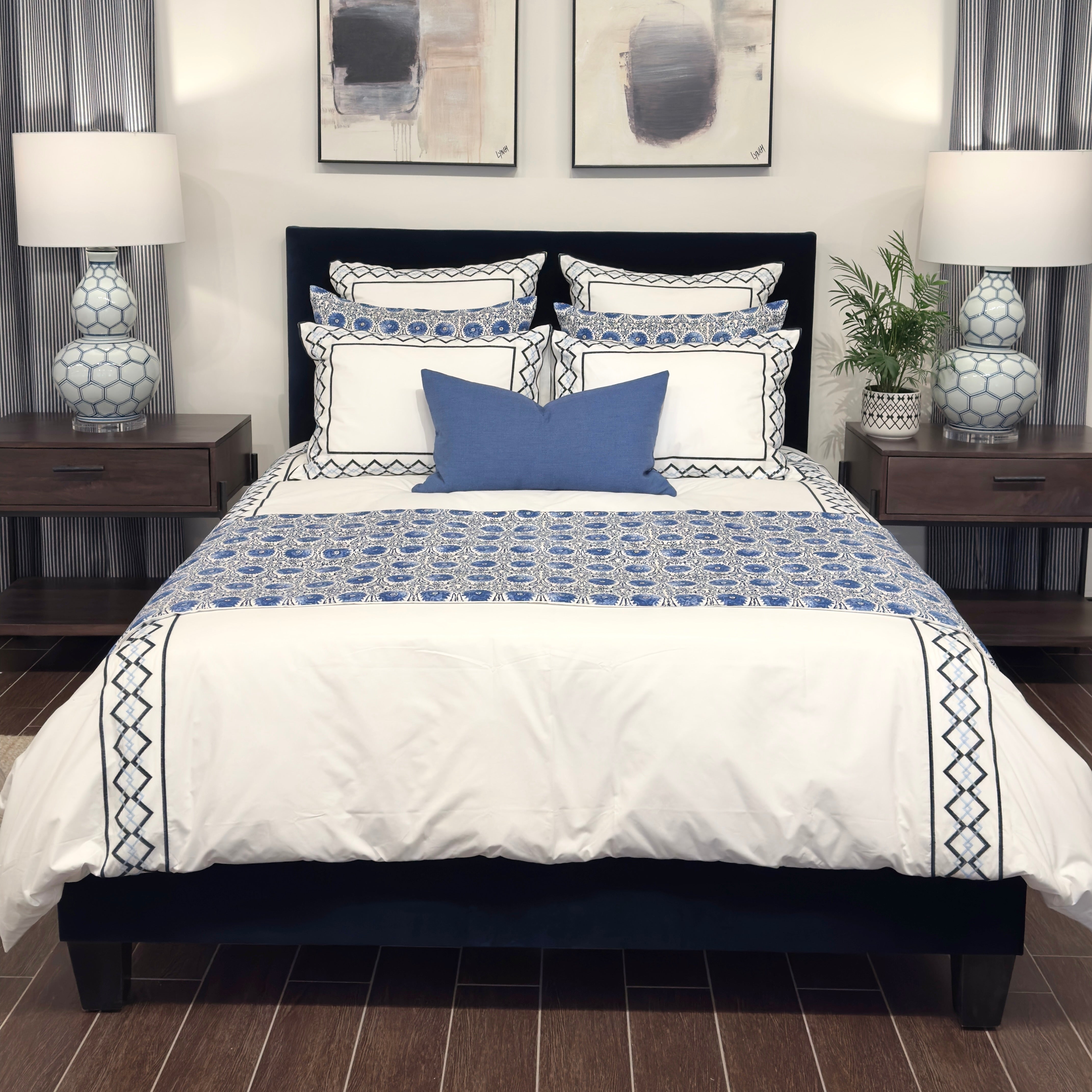 Our new white and blue bed set brings a calm, airy feel to the bedroom—easy to style, easy to love.