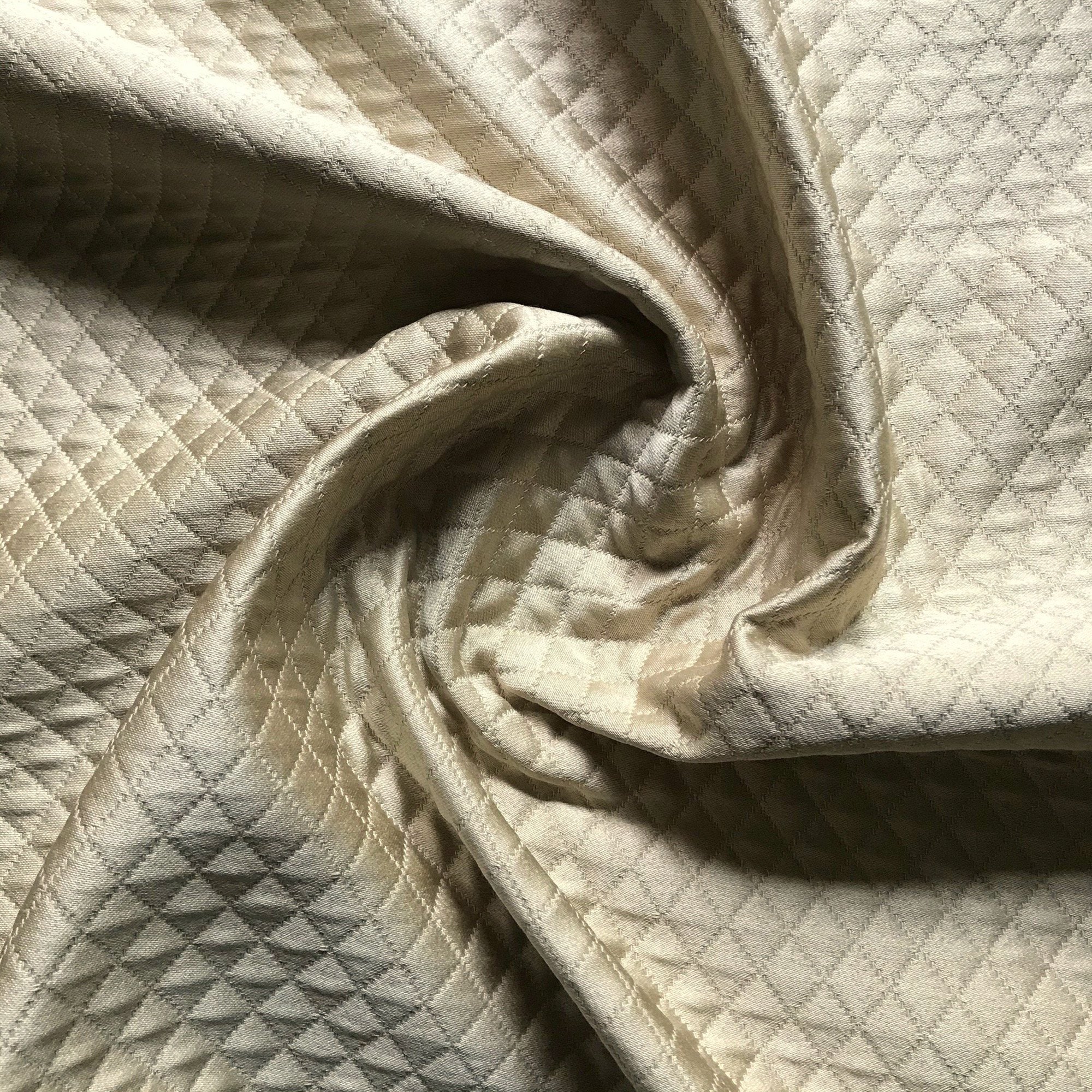 Enliven any interior with this Lustrous Beige Diamond Quilted Upholstery Fabric 54", perfect for all your upholstery needs. Give your bedding, chairs, cushions, windows and more a fresh new look with our selection of high quality fabrics curated by a team of forward thinking designers. Having limitless uses, this luxurious creamy beige quilted upholstery fabric meets flair with versatility, offering the perfect personal touch for any Modern Traditional aesthetic. Designed to last, this fabric can provide the perfect look for your home. All fabric is sold by the yard in 1-yard increments. Unfortunately, we do not accept returns on fabric orders but samples are available by purchasing a $2 swatch.