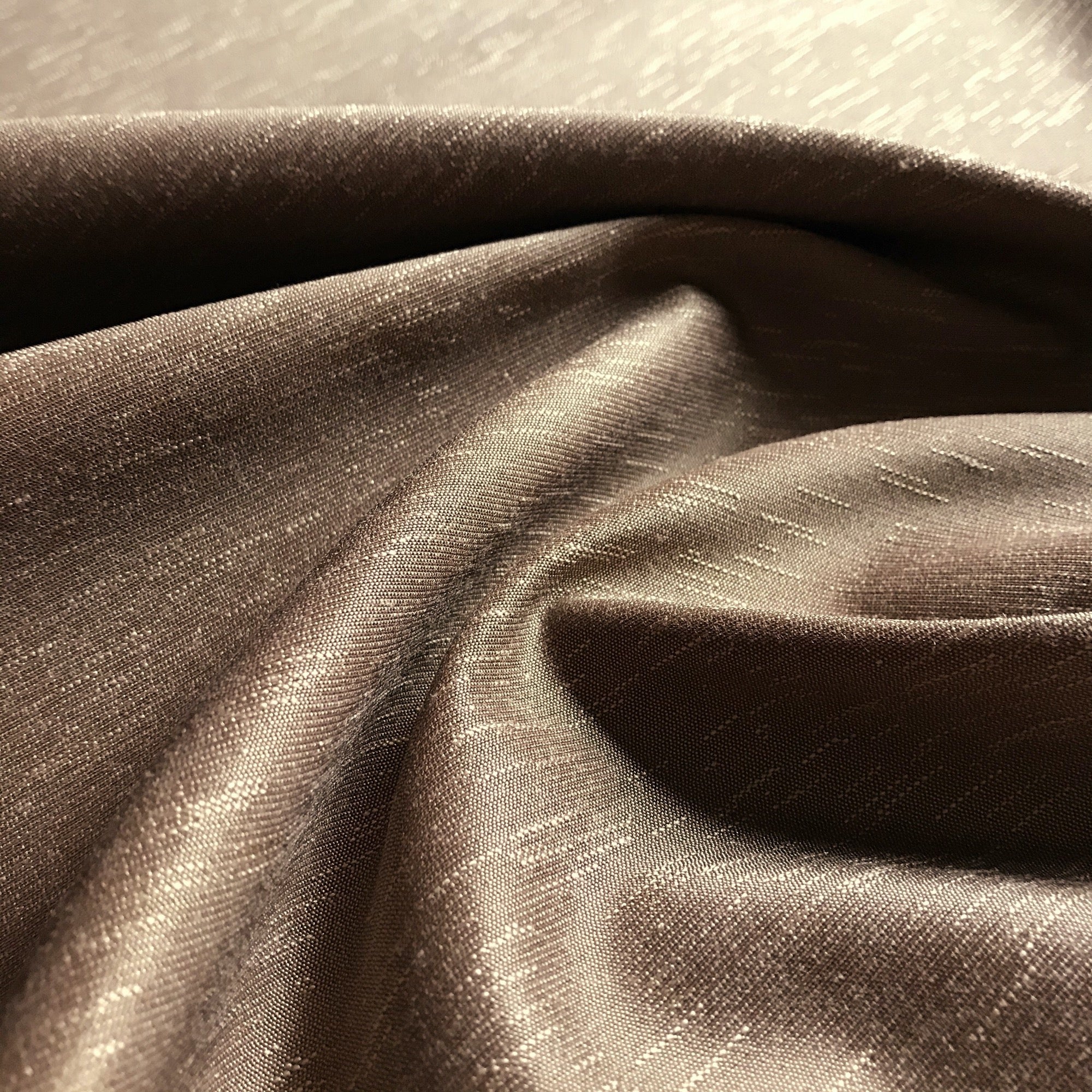Adorn any interior with this Brown Contemporary Solid Dupiponi Silk Upholstery Fabric 56", perfect for arts and crafts, DIY, upholstery, home decorating, and more. Give your bedding, chairs, cushions, windows and more a fresh new look with our selection of high quality fabrics curated by a team of trend leading designers. This luxurious solid upholstery fabric in warm pastel brown meets flair with versatility, offering the perfect personal touch for any Modern aesthetic. Designed and crafted by skilled textile artisans this fabric is made to last and never compromises on quality. All fabric is sold by the yard in 1-yard increments. Unfortunately, we do not accept returns on fabric orders but swatches are available.