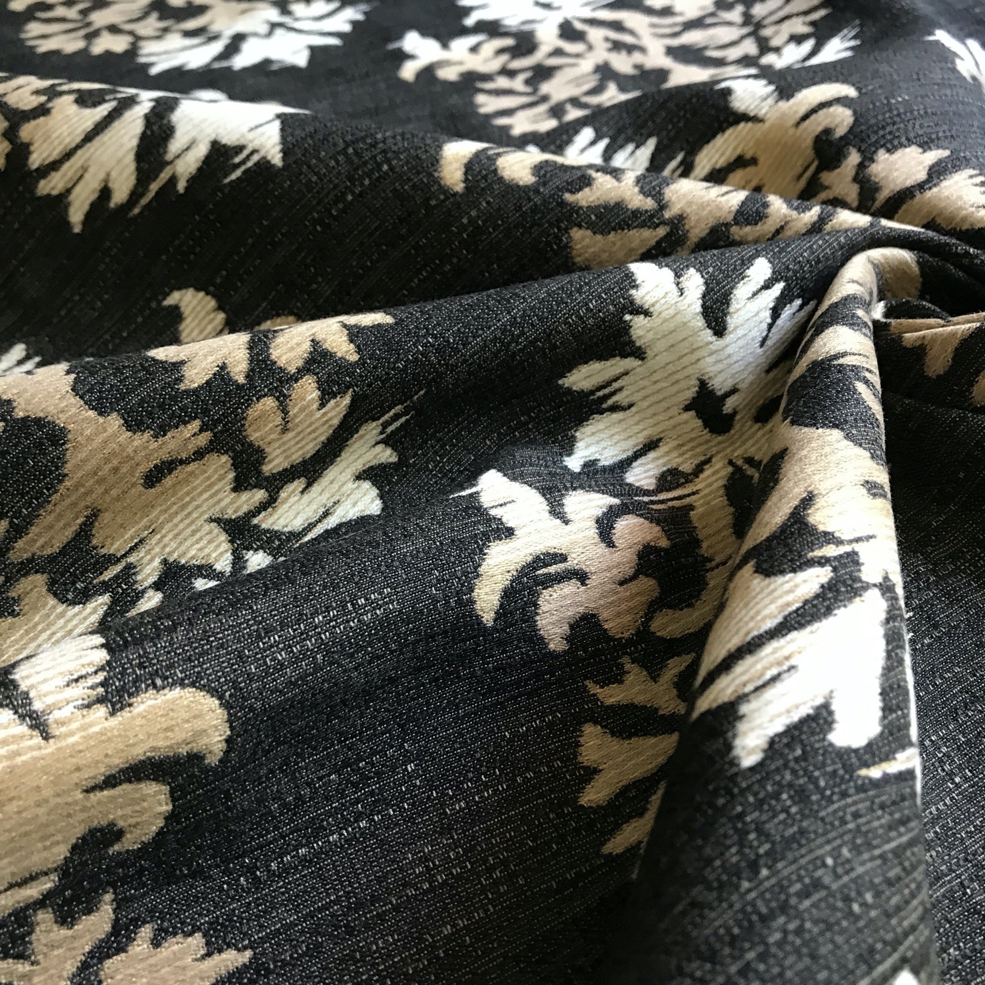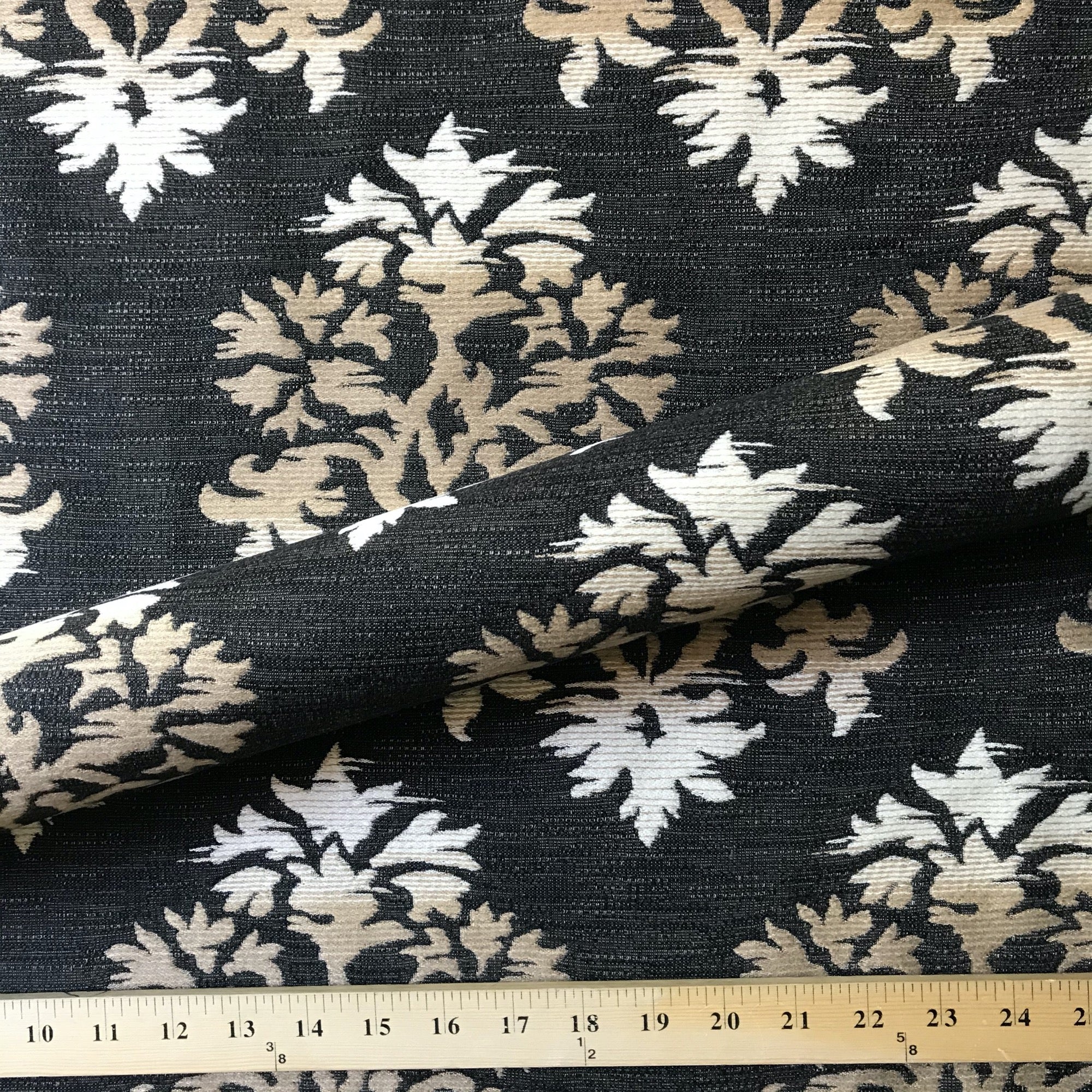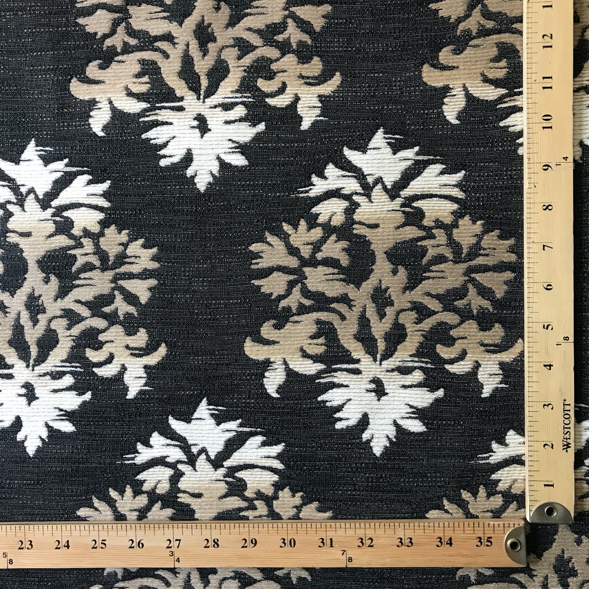 Adorn any interior with this Charcoal and Tan Woven Modern Damask Upholstery Fabric 56", perfect for arts and crafts, DIY, upholstery, home decorating, and more. Give your bedding, chairs, cushions, windows and more a fresh new look with our selection of high quality fabrics curated by a team of trend leading designers. This luxurious damask upholstery fabric in white, tan, and charcoal meets flair with versatility, offering the perfect personal touch for any Modern aesthetic. Designed and crafted by skilled textile artisans this fabric is made to last and never compromises on quality. All fabric is sold by the yard in 1-yard increments. Unfortunately, we do not accept returns on fabric orders but swatches are available.