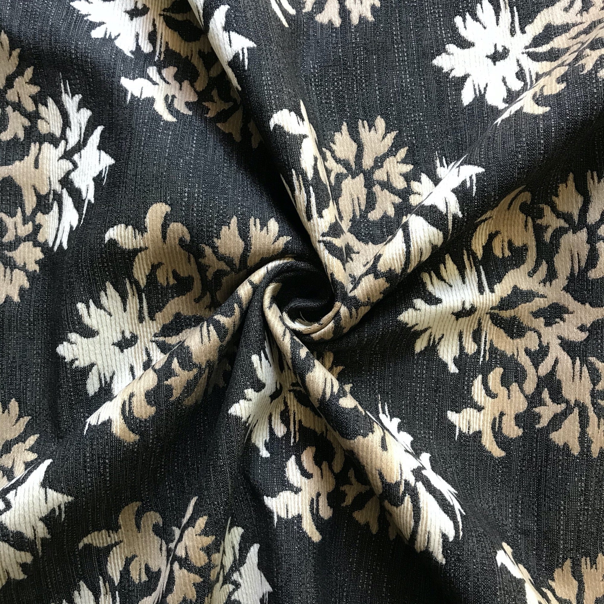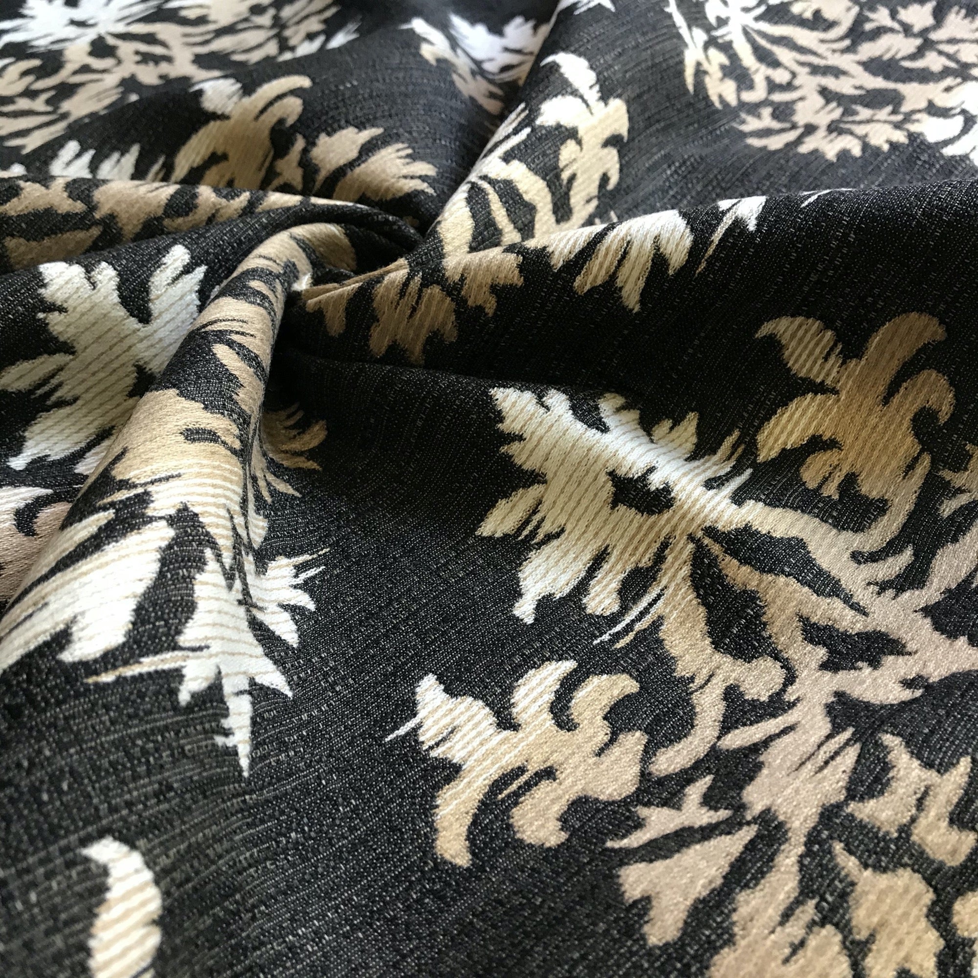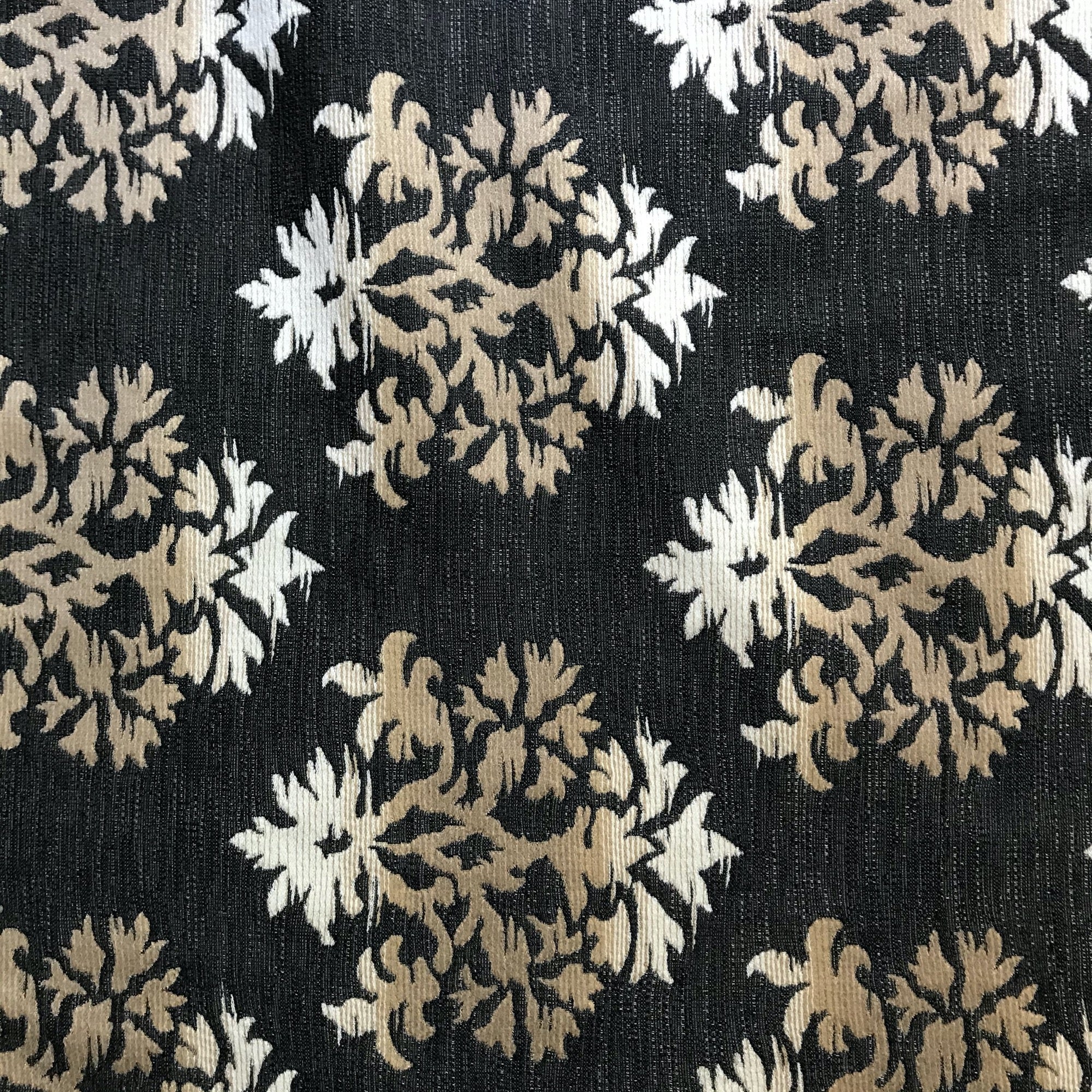 Adorn any interior with this Charcoal and Tan Woven Modern Damask Upholstery Fabric 56", perfect for arts and crafts, DIY, upholstery, home decorating, and more. Give your bedding, chairs, cushions, windows and more a fresh new look with our selection of high quality fabrics curated by a team of trend leading designers. This luxurious damask upholstery fabric in white, tan, and charcoal meets flair with versatility, offering the perfect personal touch for any Modern aesthetic. Designed and crafted by skilled textile artisans this fabric is made to last and never compromises on quality. All fabric is sold by the yard in 1-yard increments. Unfortunately, we do not accept returns on fabric orders but swatches are available.
