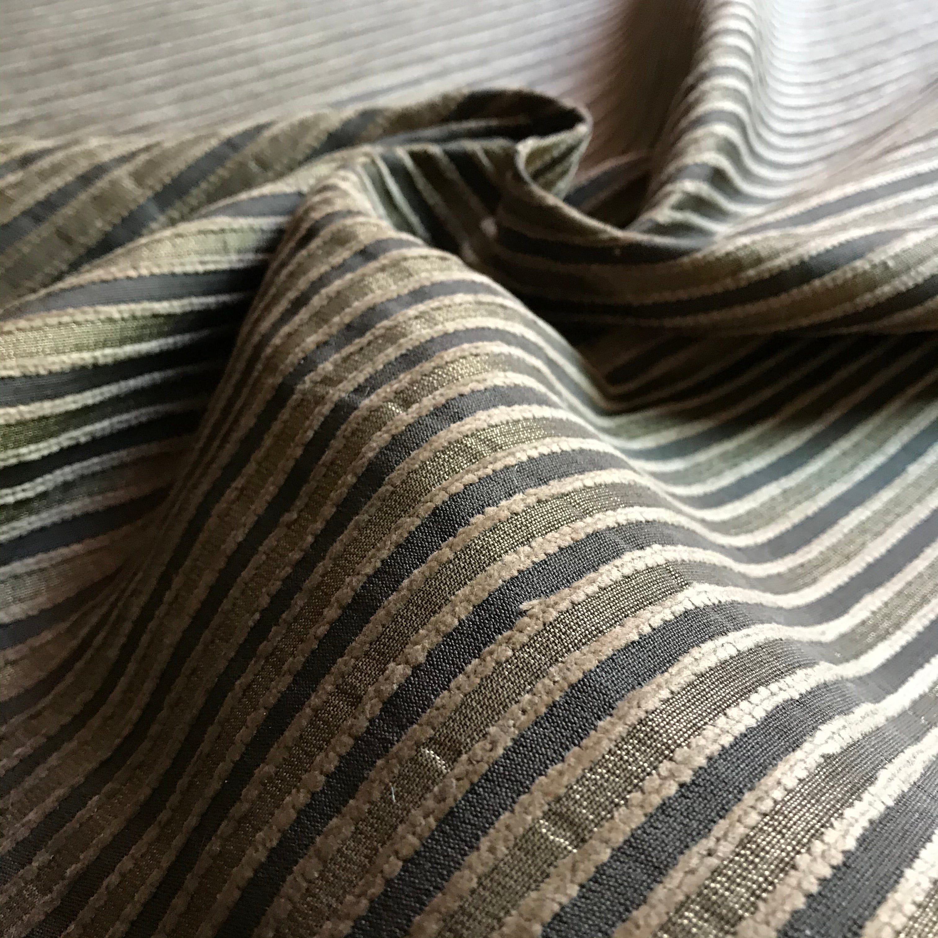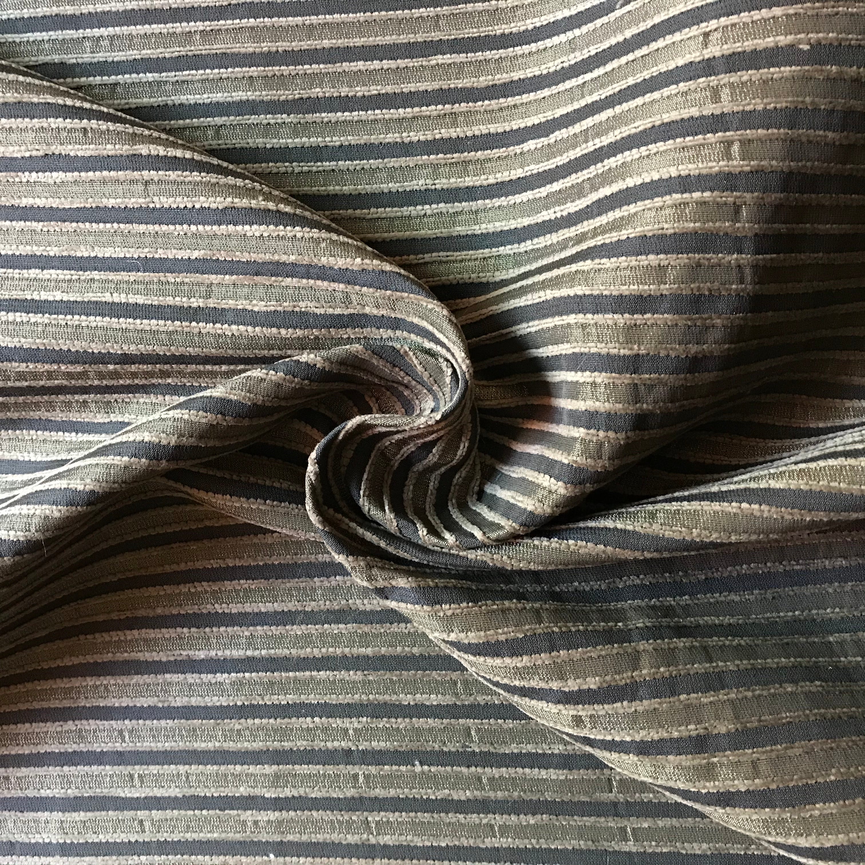 Adorn any interior with this Gold And Cocoa Vintage Stripe Chenille Upholstery Fabric 56", perfect for arts and crafts, DIY, upholstery, home decorating, and more. Give your bedding, chairs, cushions, windows and more a fresh new look with our selection of high quality fabrics curated by a team of trend leading designers. This luxurious stripe chenille upholstery fabric in gold and brown meets flair with versatility, offering the perfect personal touch for any Vintage aesthetic. Designed and crafted by skilled textile artisans this fabric is made to last and never compromises on quality. All fabric is sold by the yard in 1-yard increments. Unfortunately, we do not accept returns on fabric orders but swatches are available.