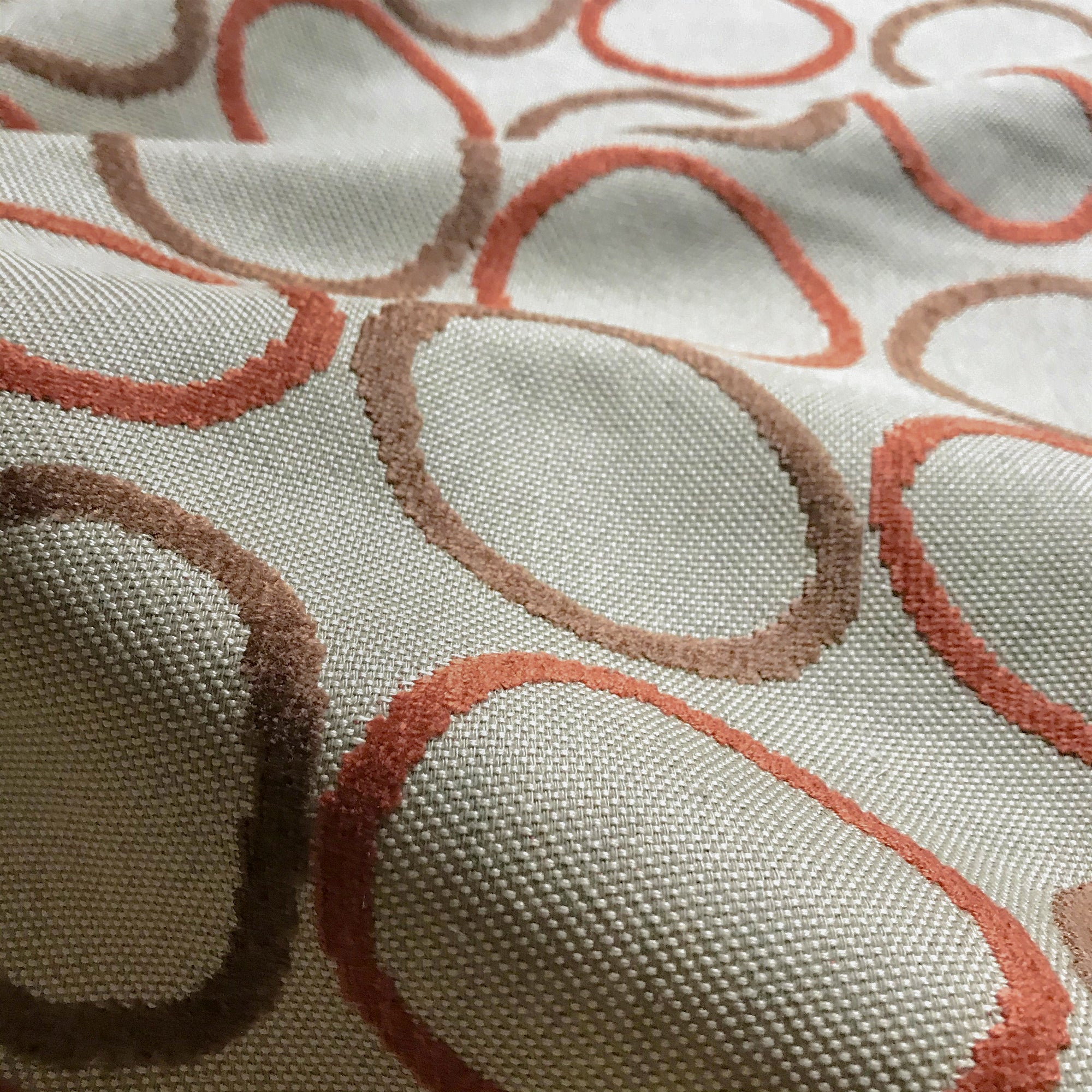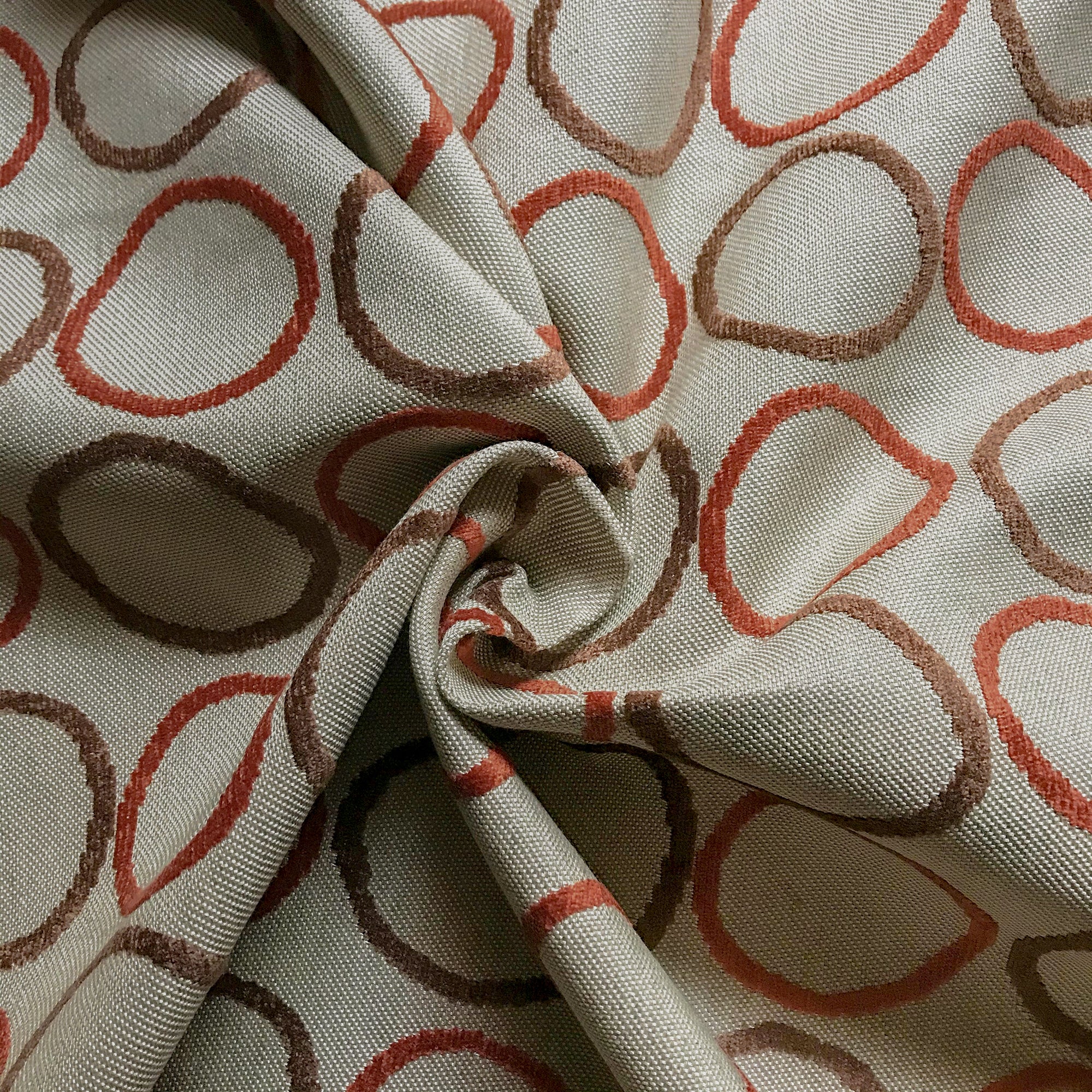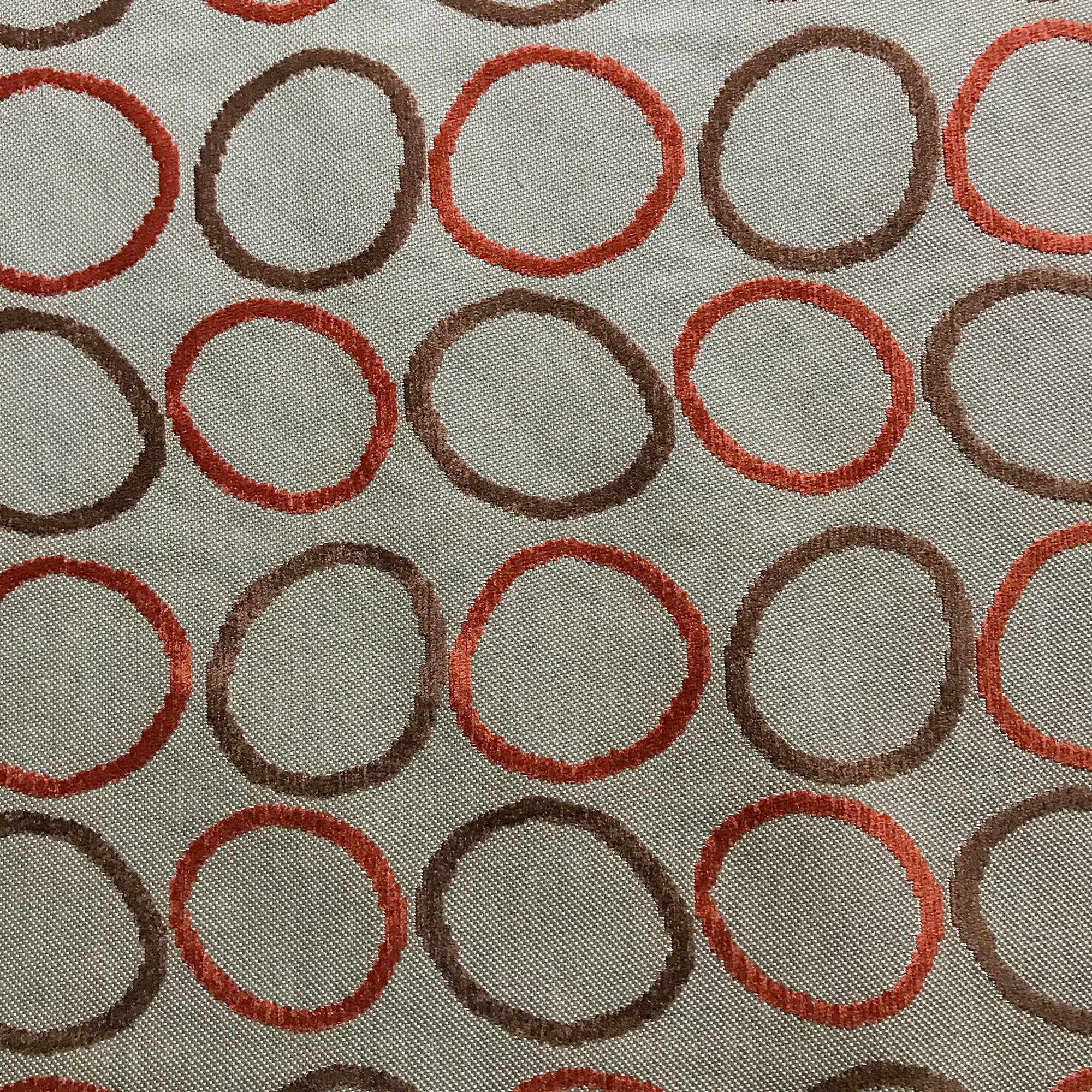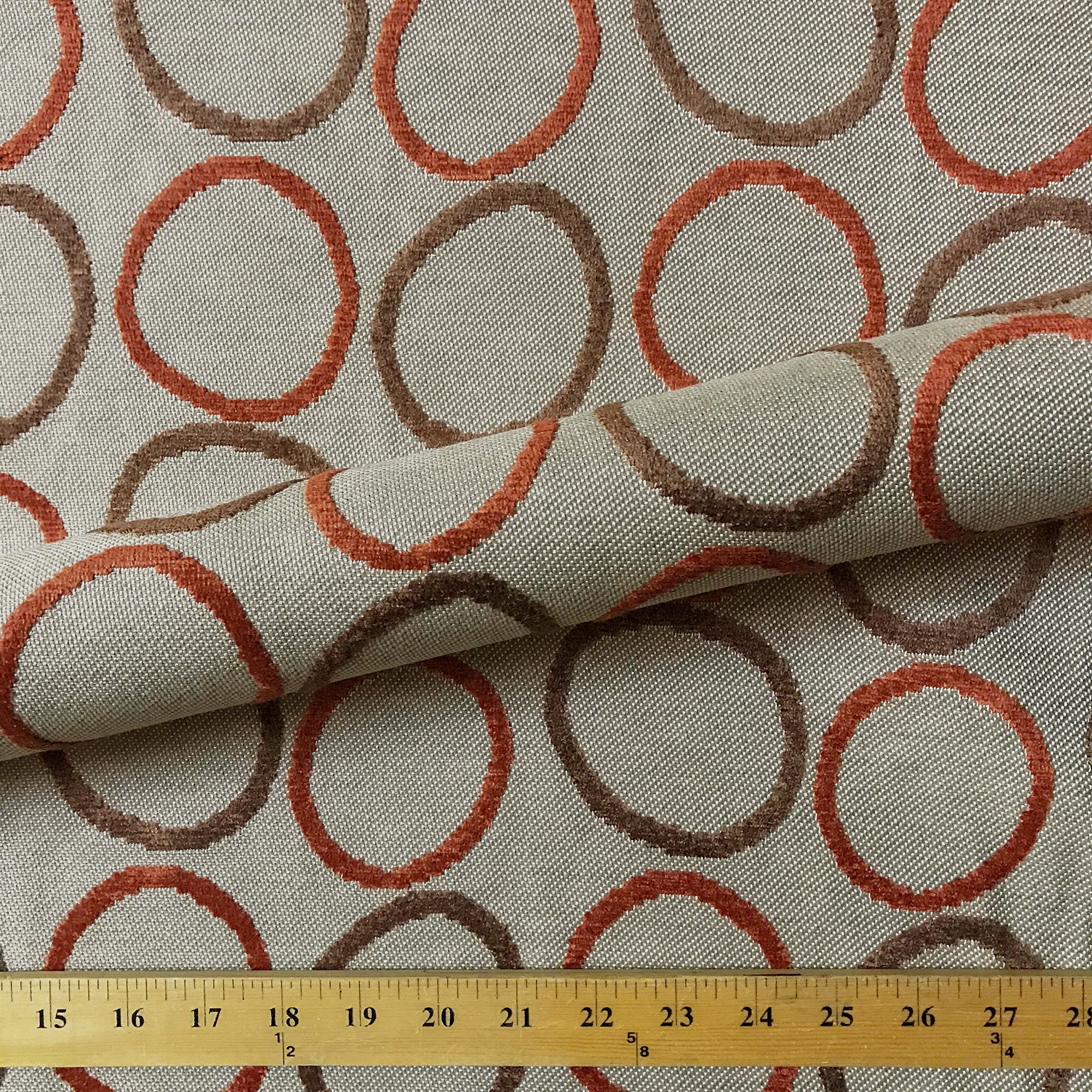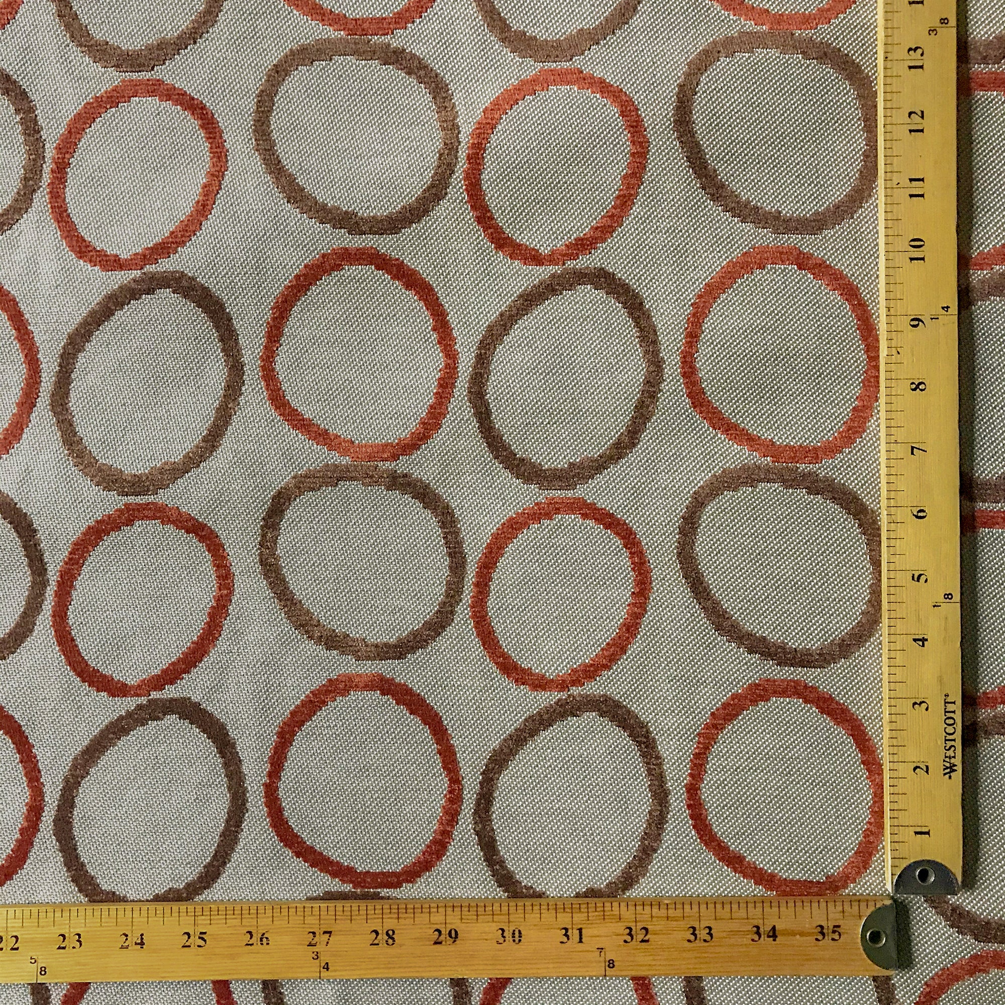 Red and Brown Mid Century Circle Velvet Upholstery Fabric 54"