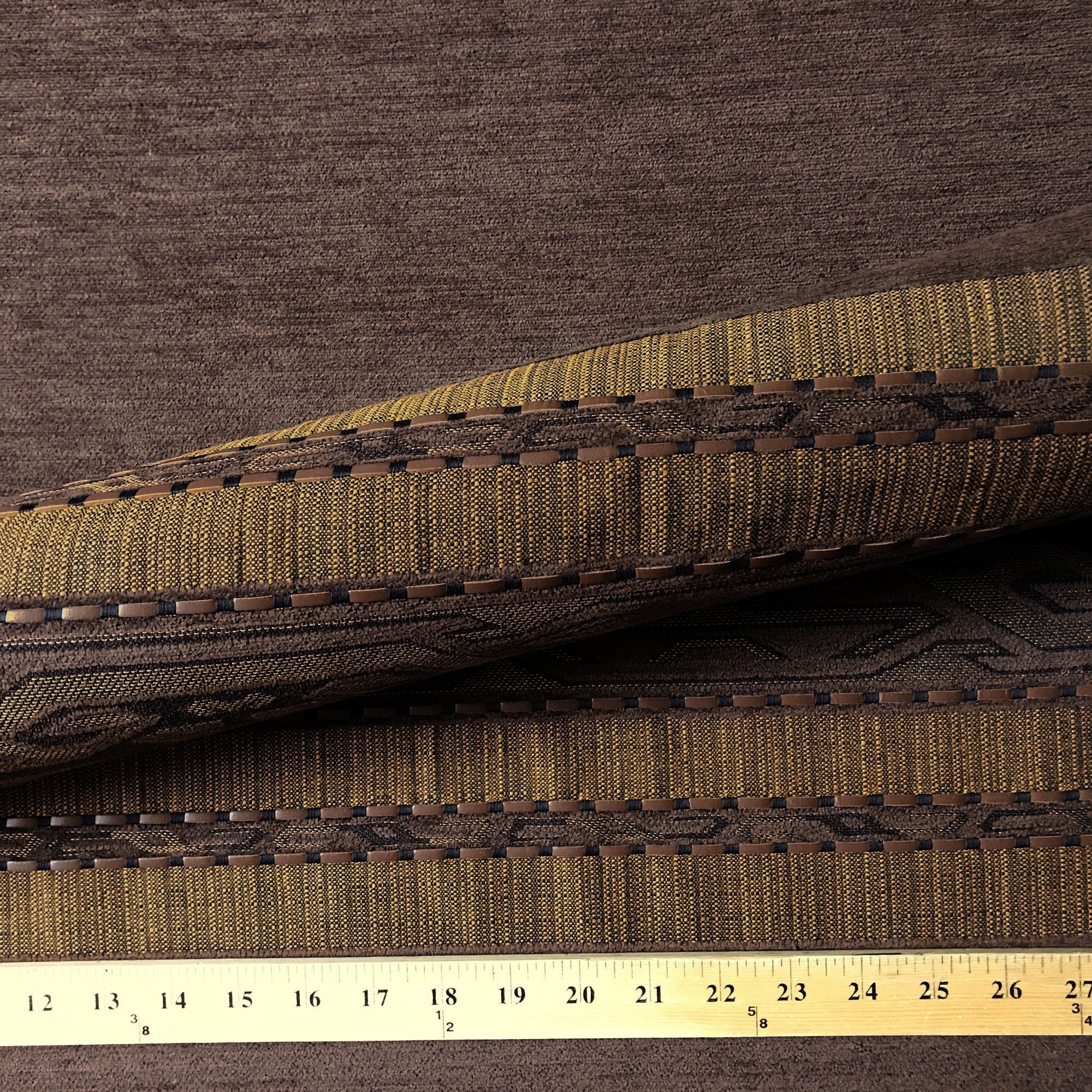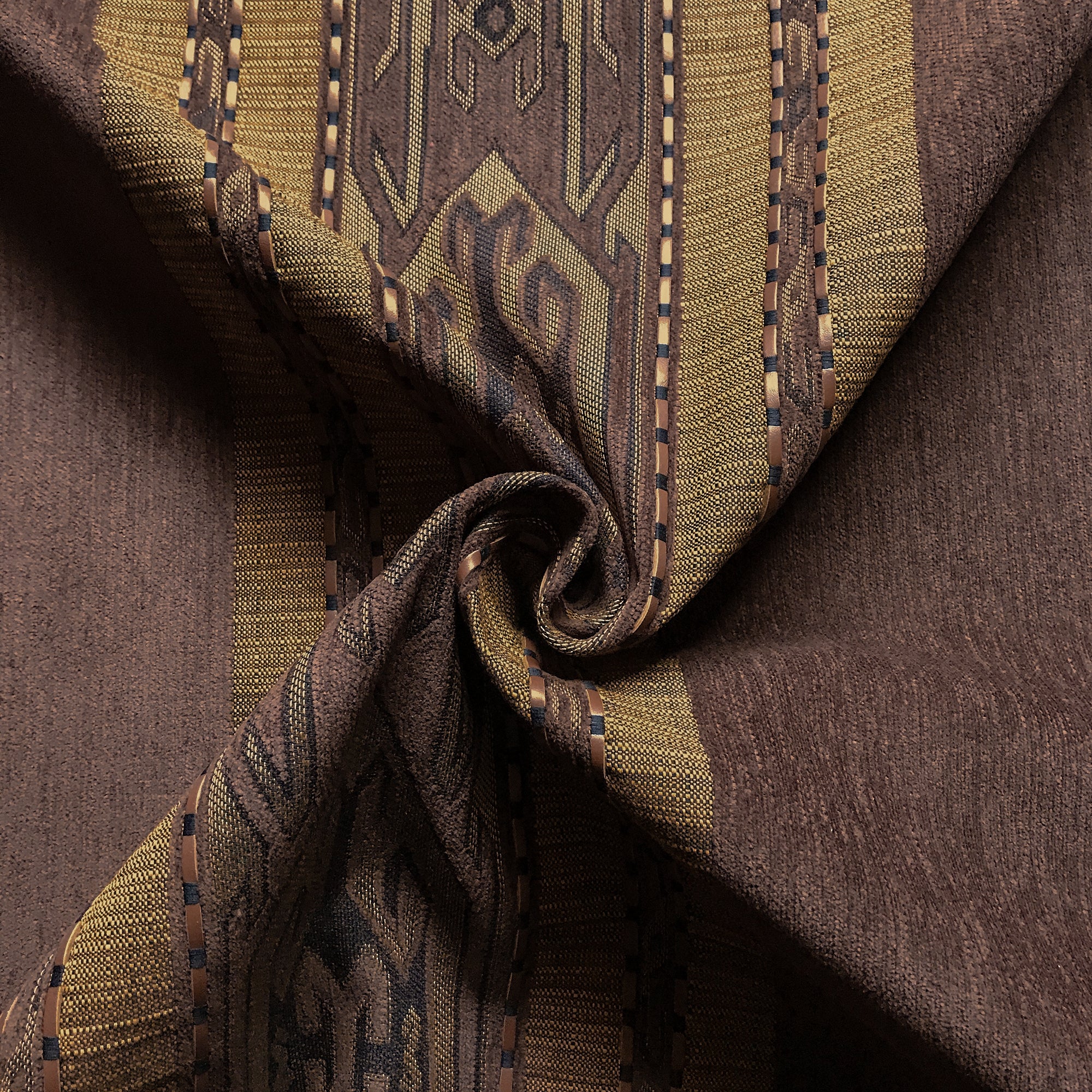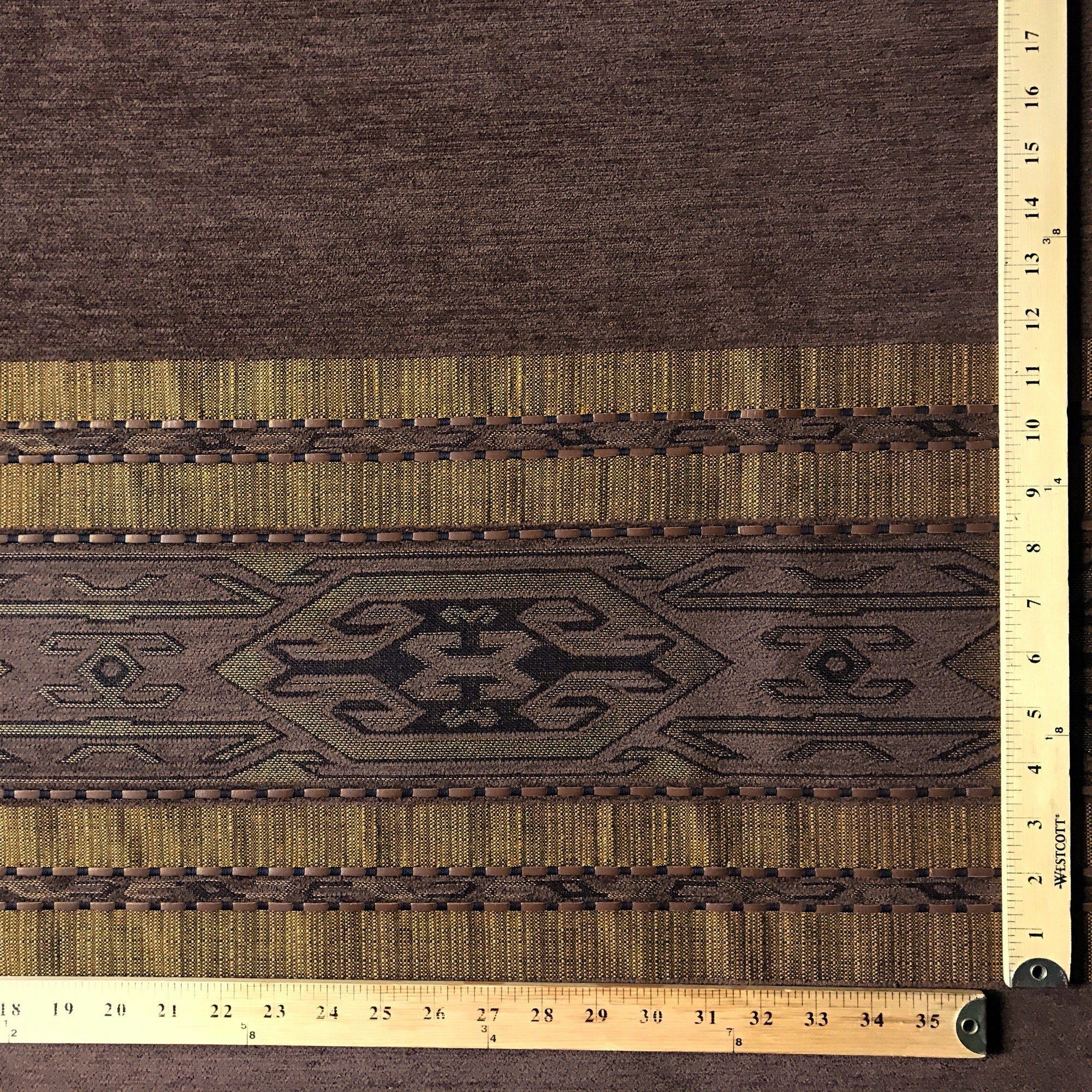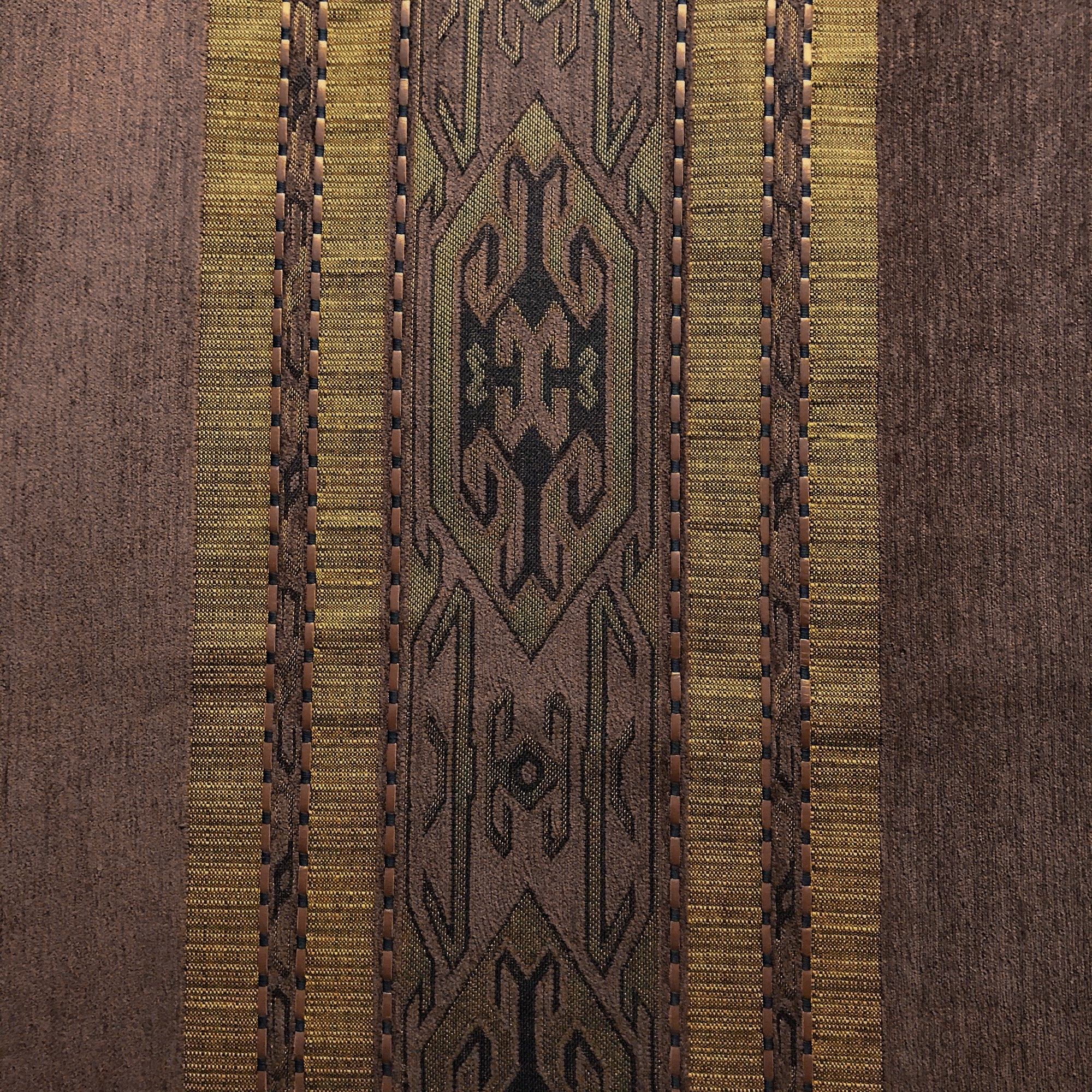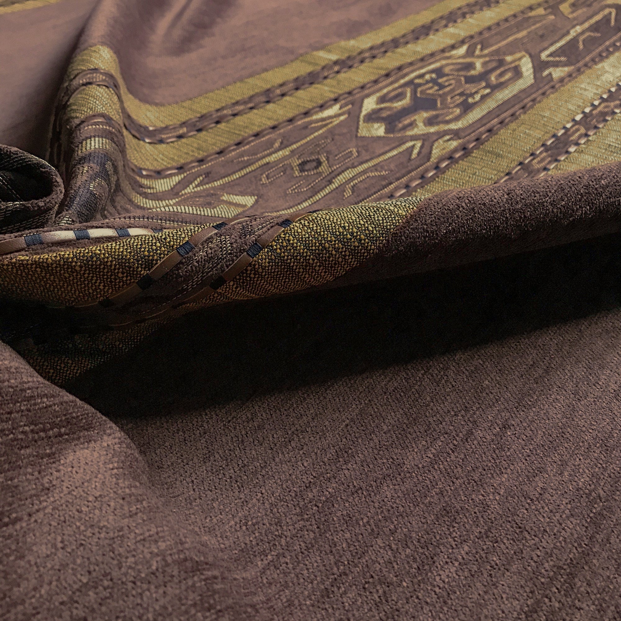 Adorn any interior with this Brown Southwestern Geometric Faux Leather Stripe Chenille Upholstery Fabric 54", perfect for arts and crafts, DIY, upholstery, home decorating, and more. Give your bedding, chairs, cushions, windows and more a fresh new look with our selection of high quality fabrics curated by a team of trend leading designers. This luxurious geometric chenille upholstery fabric in brown meets flair with versatility, offering the perfect personal touch for any Southwestern aesthetic. Designed and crafted by skilled textile artisans this fabric is made to last and never compromises on quality. All fabric is sold by the yard in 1-yard increments. Unfortunately, we do not accept returns on fabric orders but swatches are available.