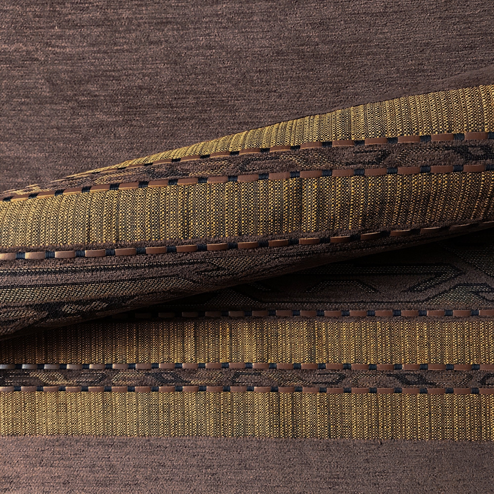 Brown Southwestern Geometric Faux Leather Stripe Chenille Upholstery Fabric 54"