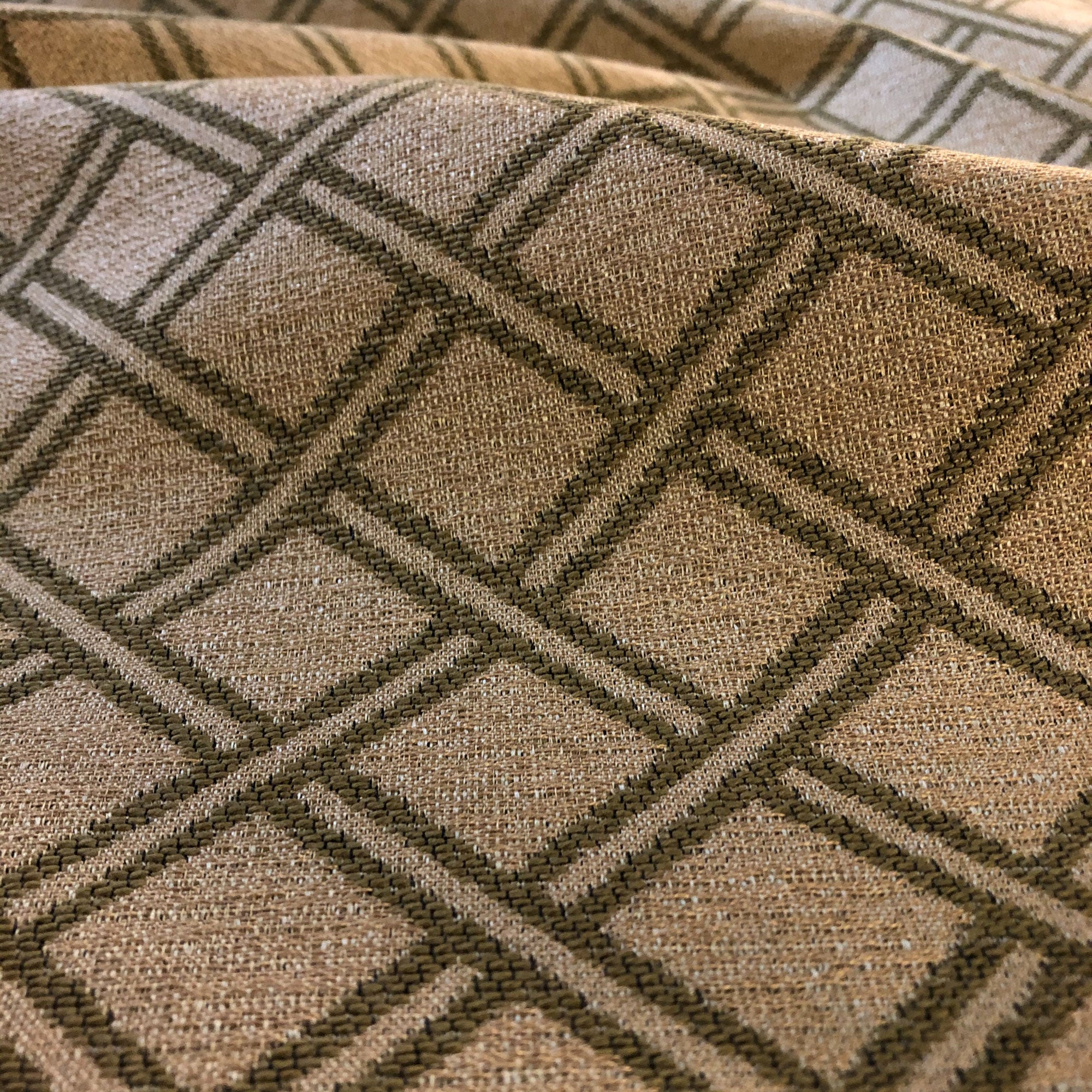 Enliven any interior with this Tan Traditional Geometric Jacquard Upholstery Fabric 54", perfect for all your upholstery needs. Give your bedding, chairs, cushions, windows and more a fresh new look with our selection of high quality fabrics curated by a team of forward thinking designers. Having limitless uses, this luxurious tan jacquard upholstery fabric meets flair with versatility, offering the perfect personal touch for any Traditional aesthetic. Designed to last, this fabric can provide the perfect look for your home. All fabric is sold by the yard in 1-yard increments. Unfortunately, we do not accept returns on fabric orders but samples are available by purchasing a $2 swatch.