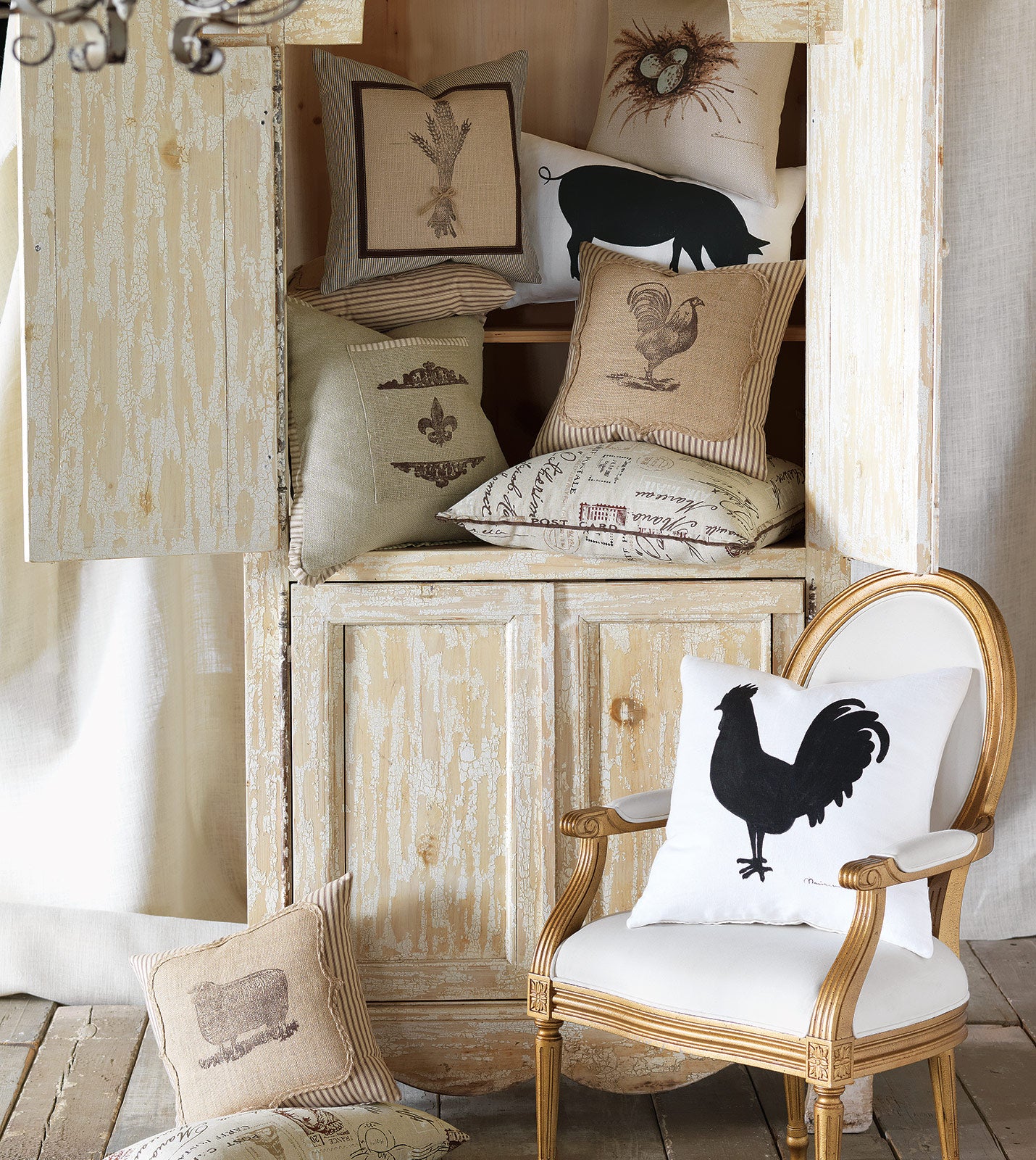 French Country Pig Silhouette Decorative Pillow Cover 13x22