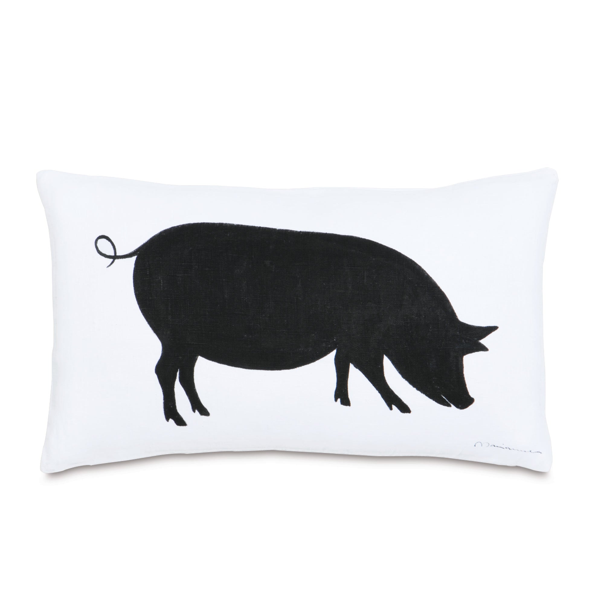 - Decorative pillow with a hand-painted pig silhouette in black