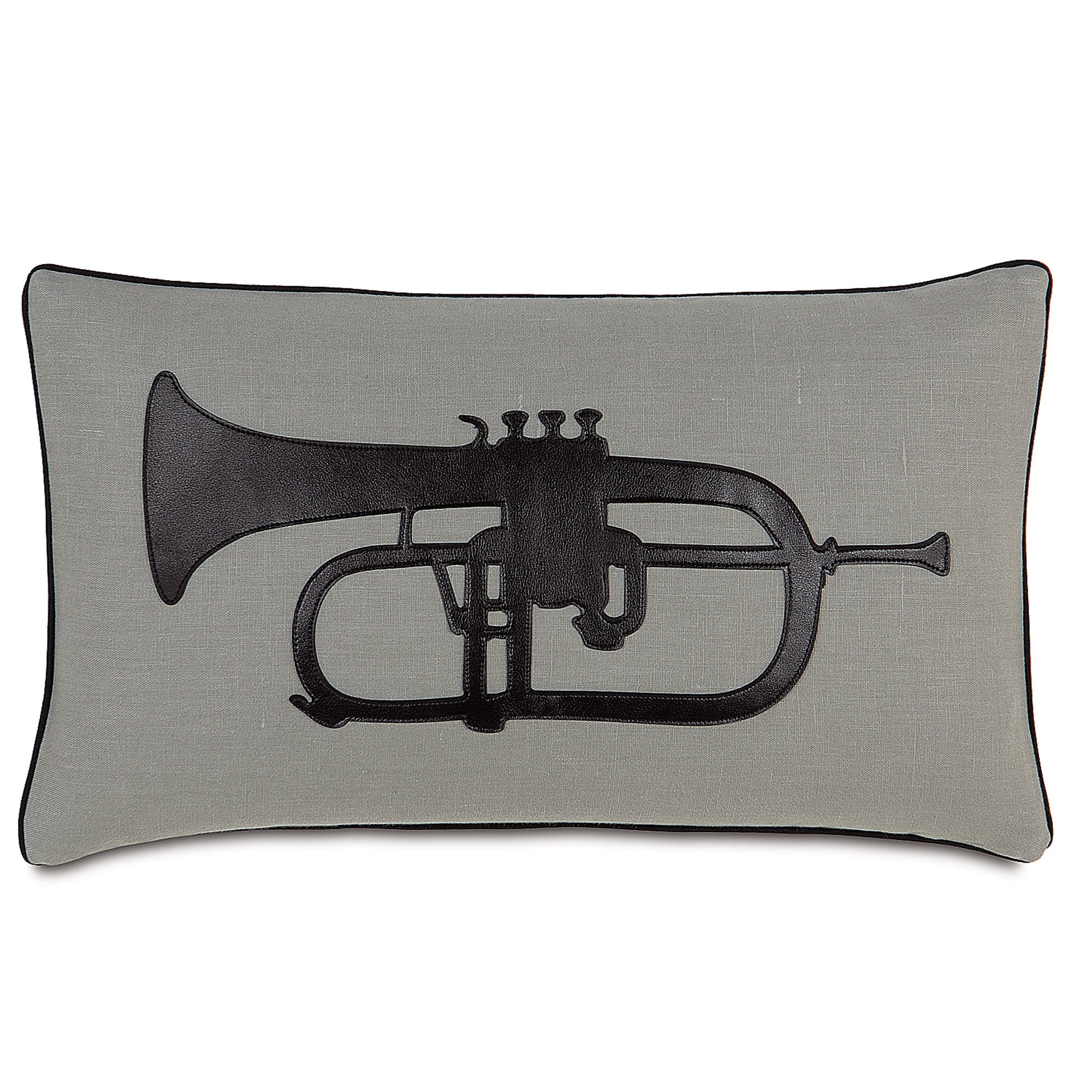 - 100% cotton decorative pillow with laser-cut faux leather trumpet applique on face