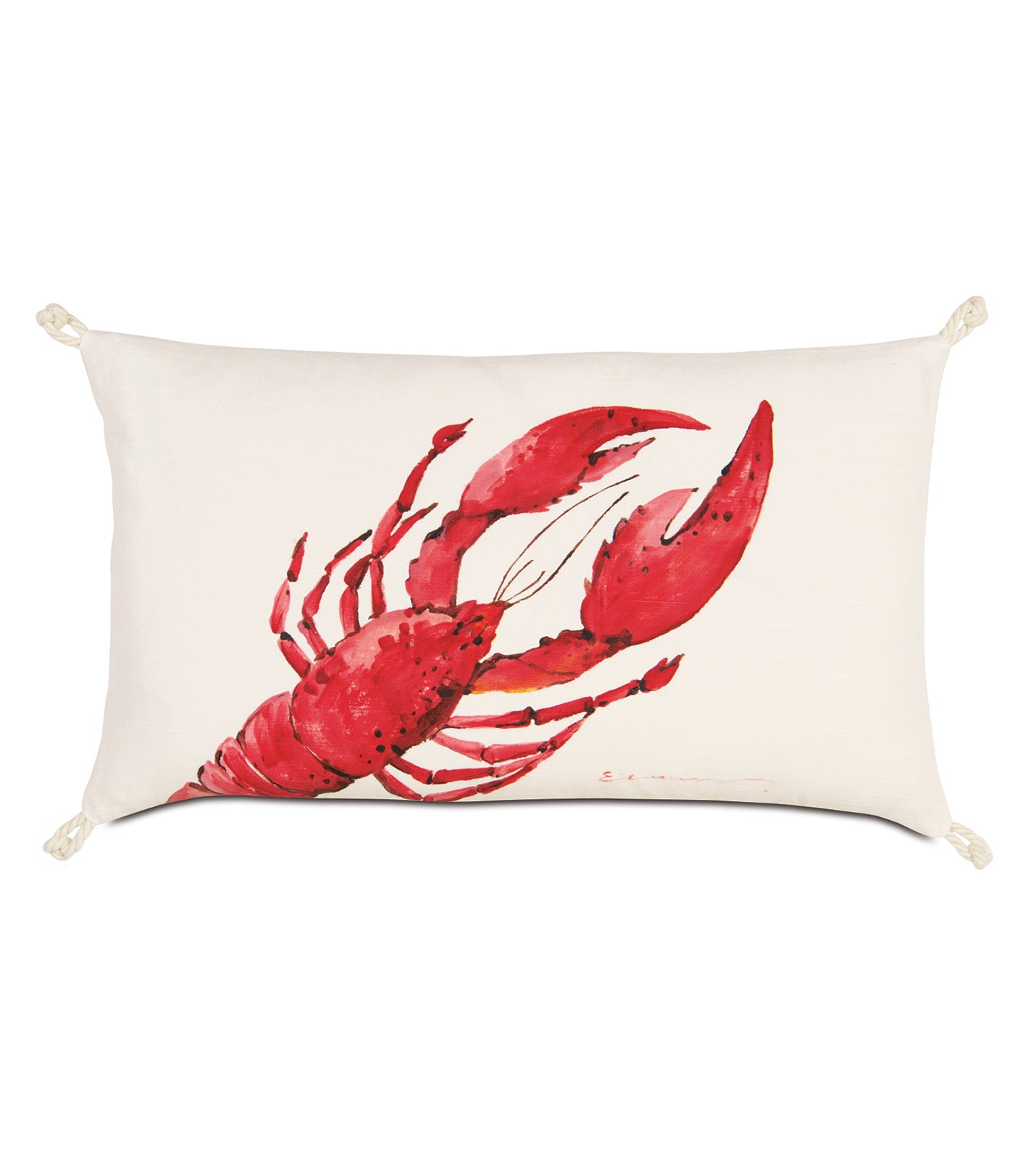 - Decorative pillow cover with hand-painted lobster on face