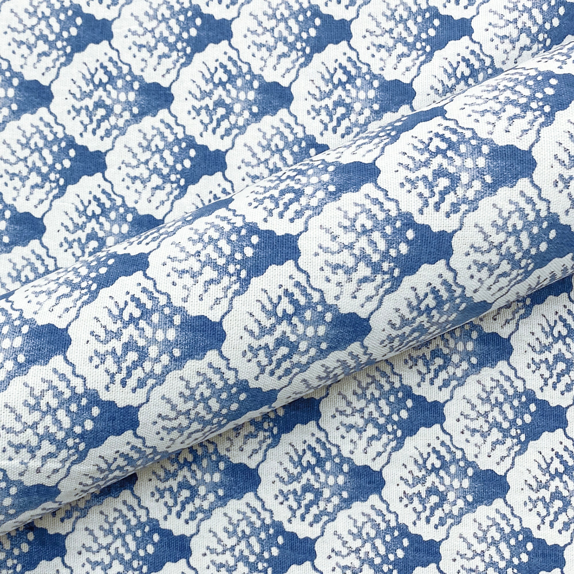 Indigo Honolulu shell Print 100% Cotton Upholstery Fabric 54"