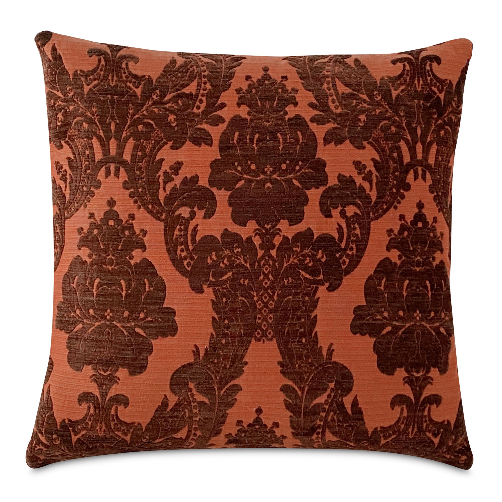 - Ornate damask pattern in a deep burnt orange for a sophisticated, warm look