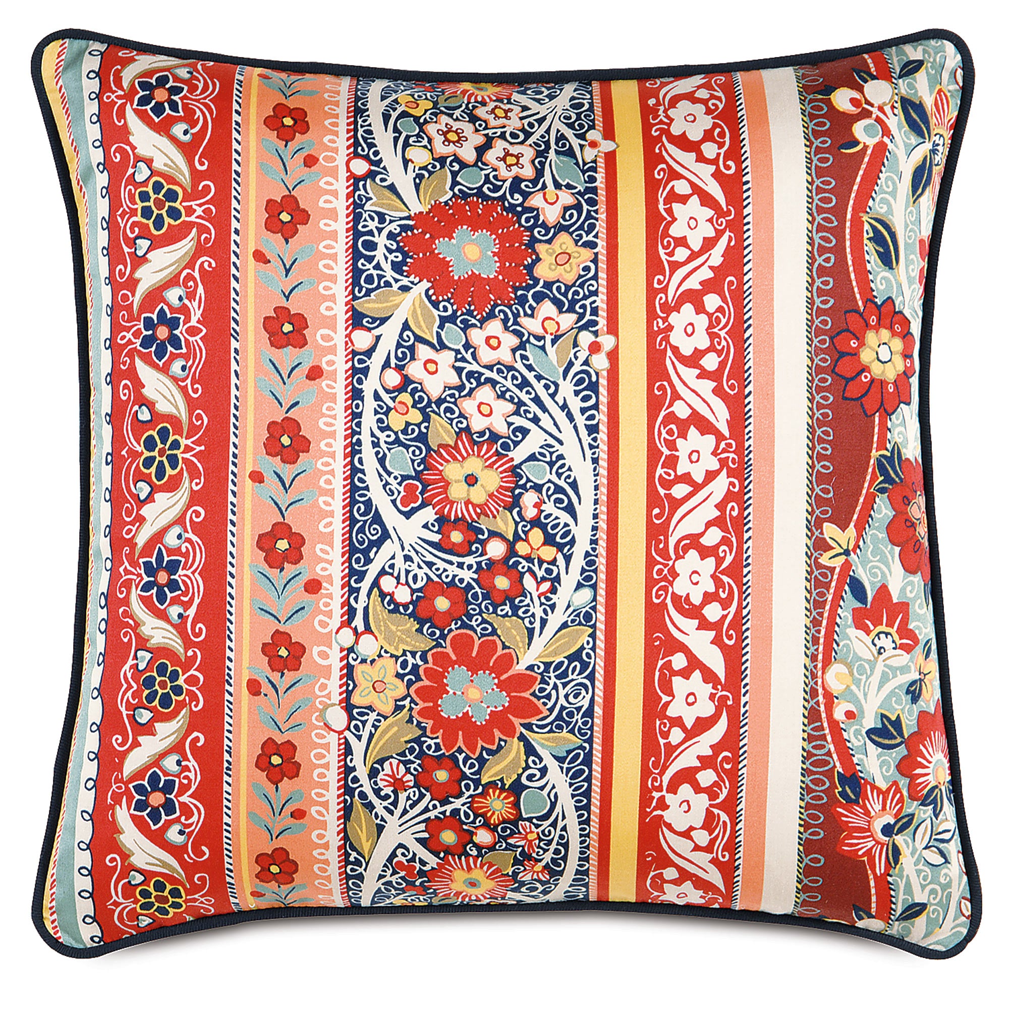 • Decorative pillow with colorful floral and stripe pattern on face