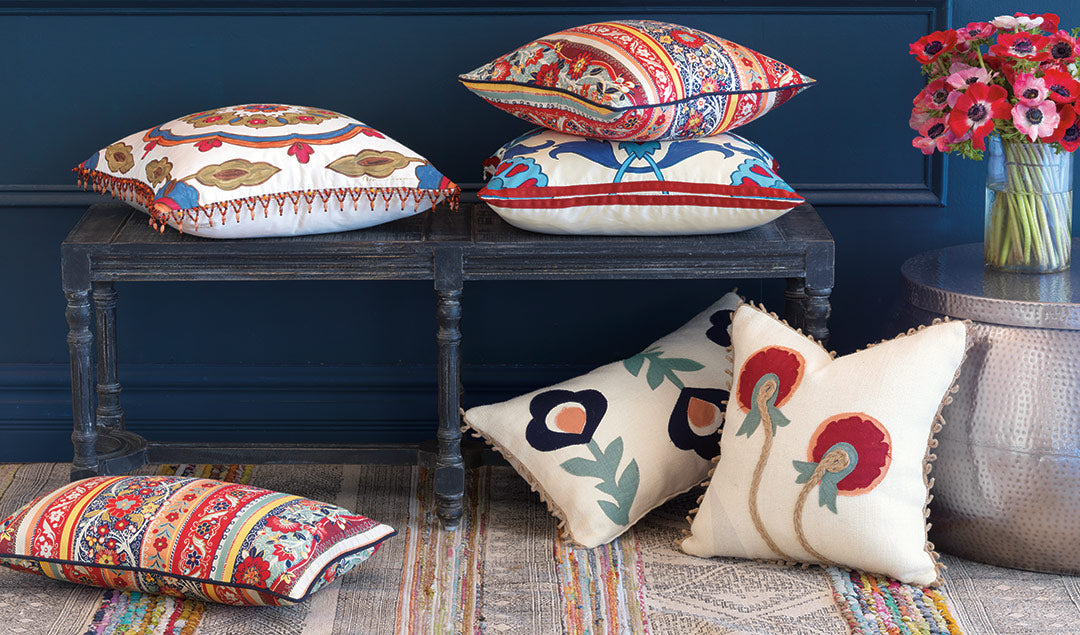 With an emphasis on color and bold forms, Folkloric whisks you from the idyllic mountains of al-Andalus to the Old World charm of Saint Petersburg. Strong geometric detailing, stylized flora, and intense hues will transport you to distant lands for the ultimate worldly style.