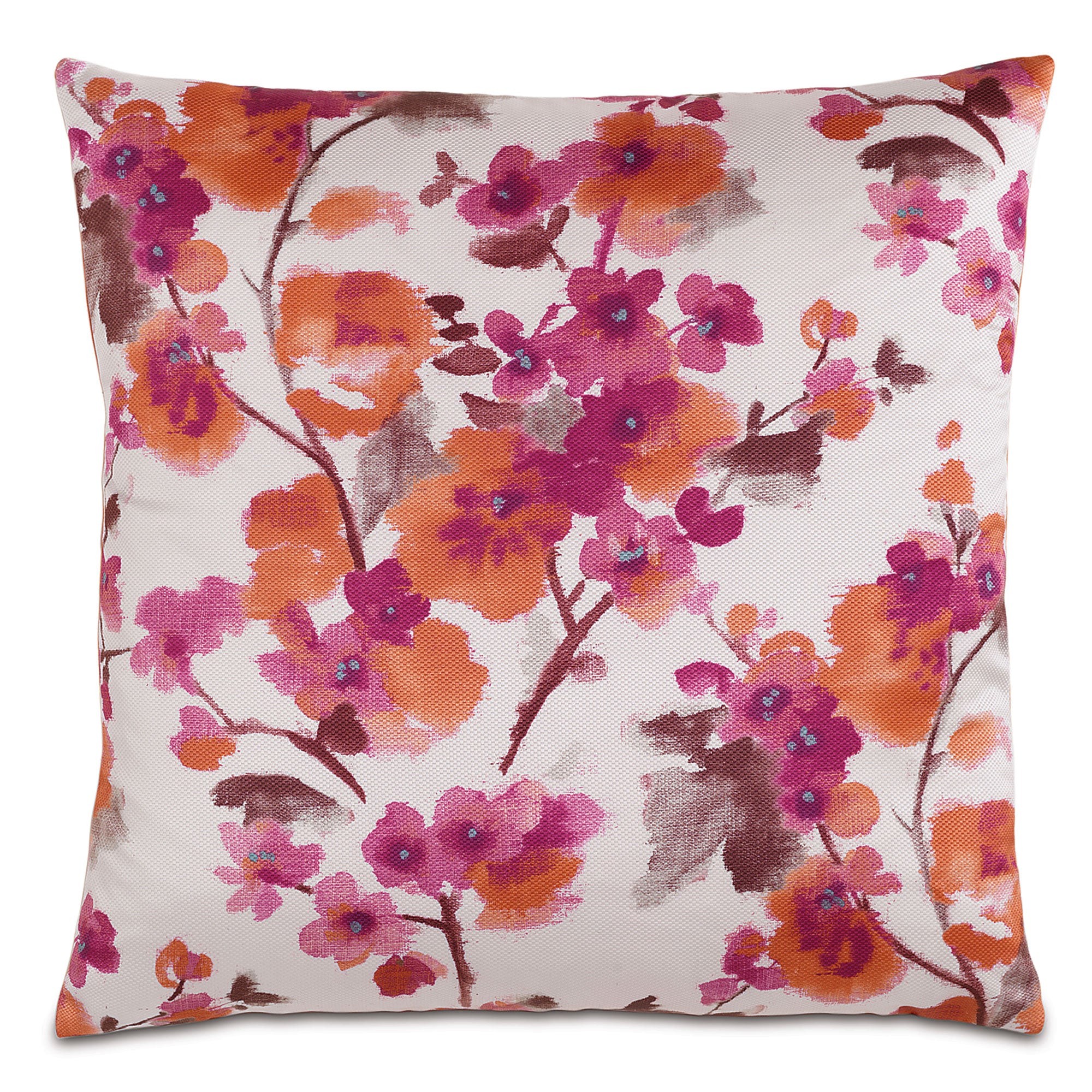 - Decorative pillow cover with flora pattern in sunset hues on face