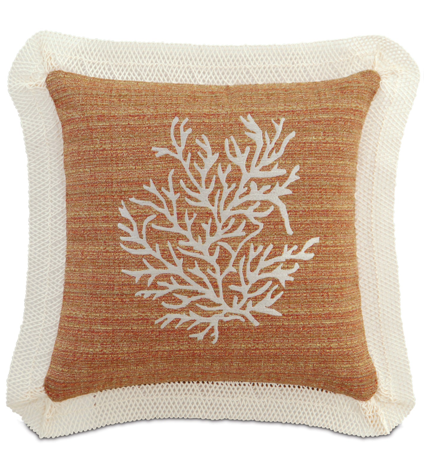 Provo Embroidered Coral Throw Pillow Cover 18x18