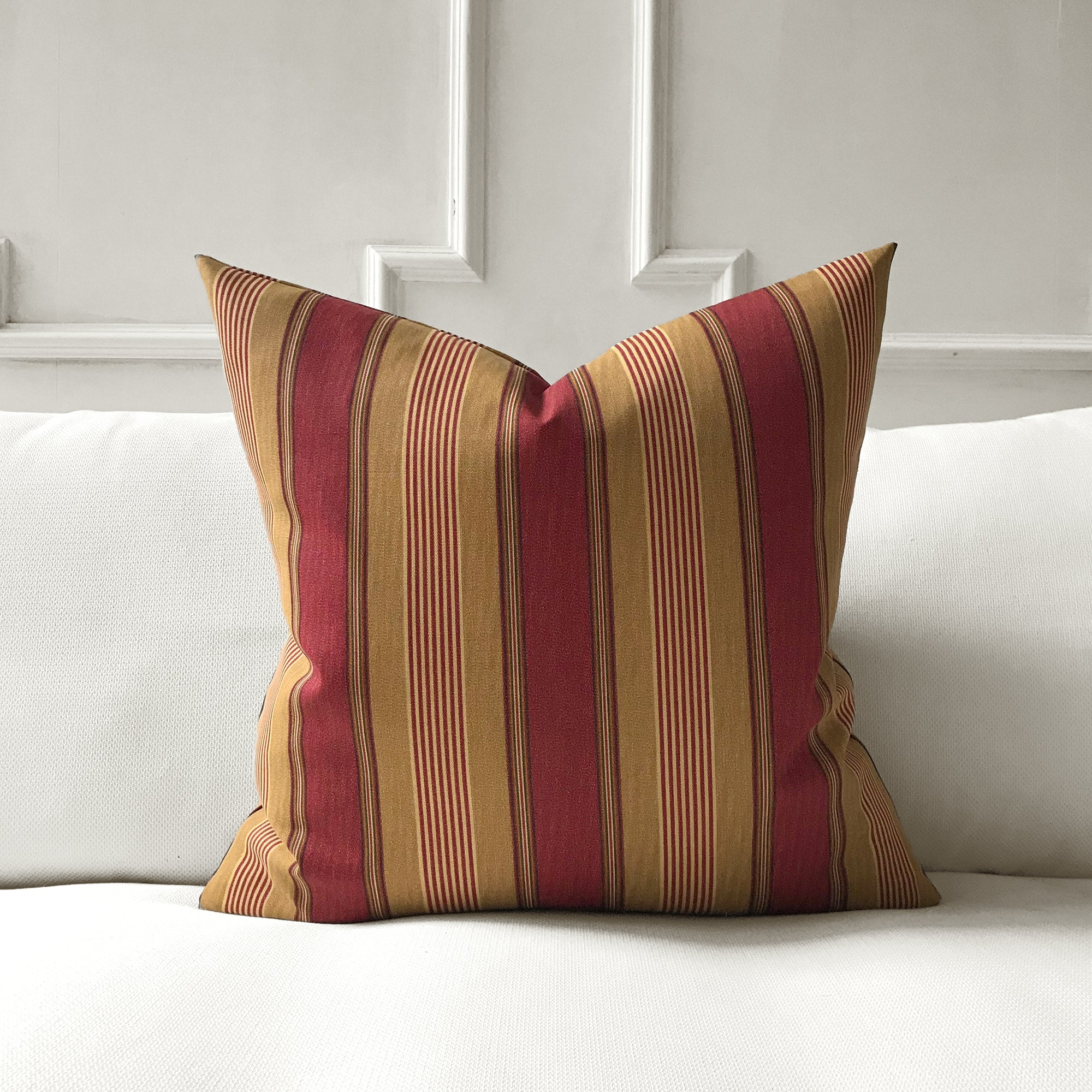 ⁌ Add a touch of timeless elegance to your decor with the traditional red-striped Throw Pillow Cover. Featuring an alternating stripe pattern in warm tones of red and complementary shades, this 24x24 pillow cover offers a classic design that enhances any space. Its bold yet refined look makes it perfect for layering on sofas, beds, or accent chairs, seamlessly blending with traditional and modern interiors.