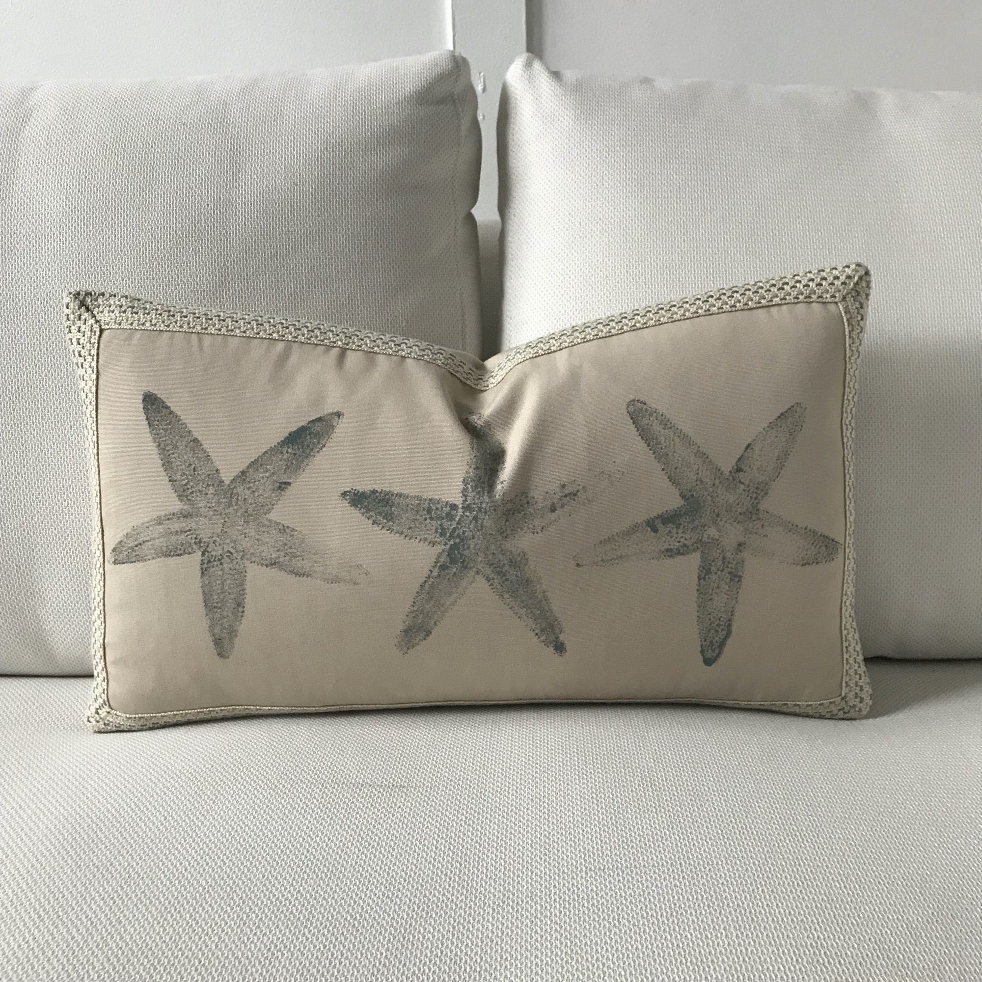 Block Printed Starfish Outdoor Lumbar Pillow Cover 13x22