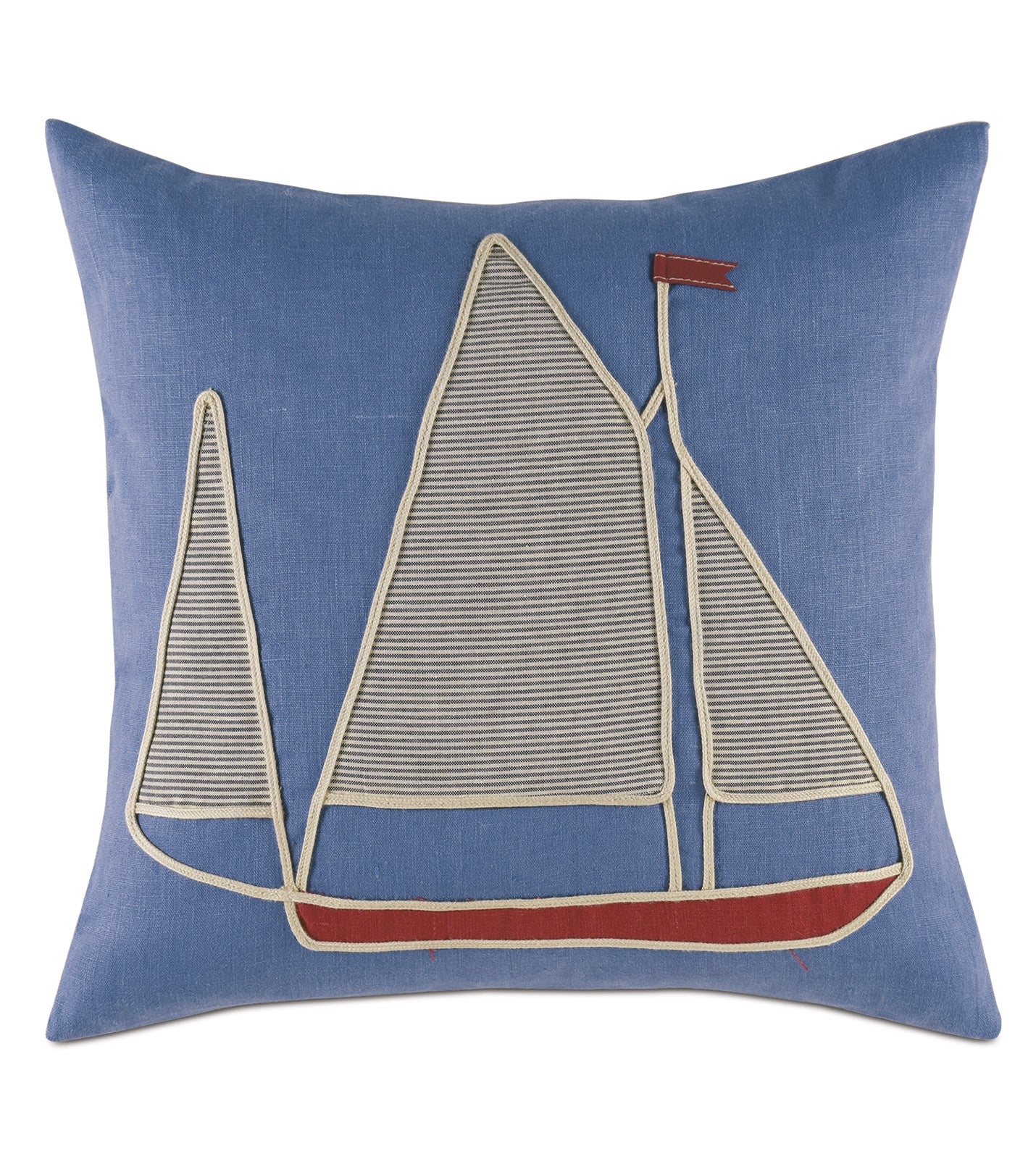 - Throw pillow with laser cut sail boat on 100% linen fabric