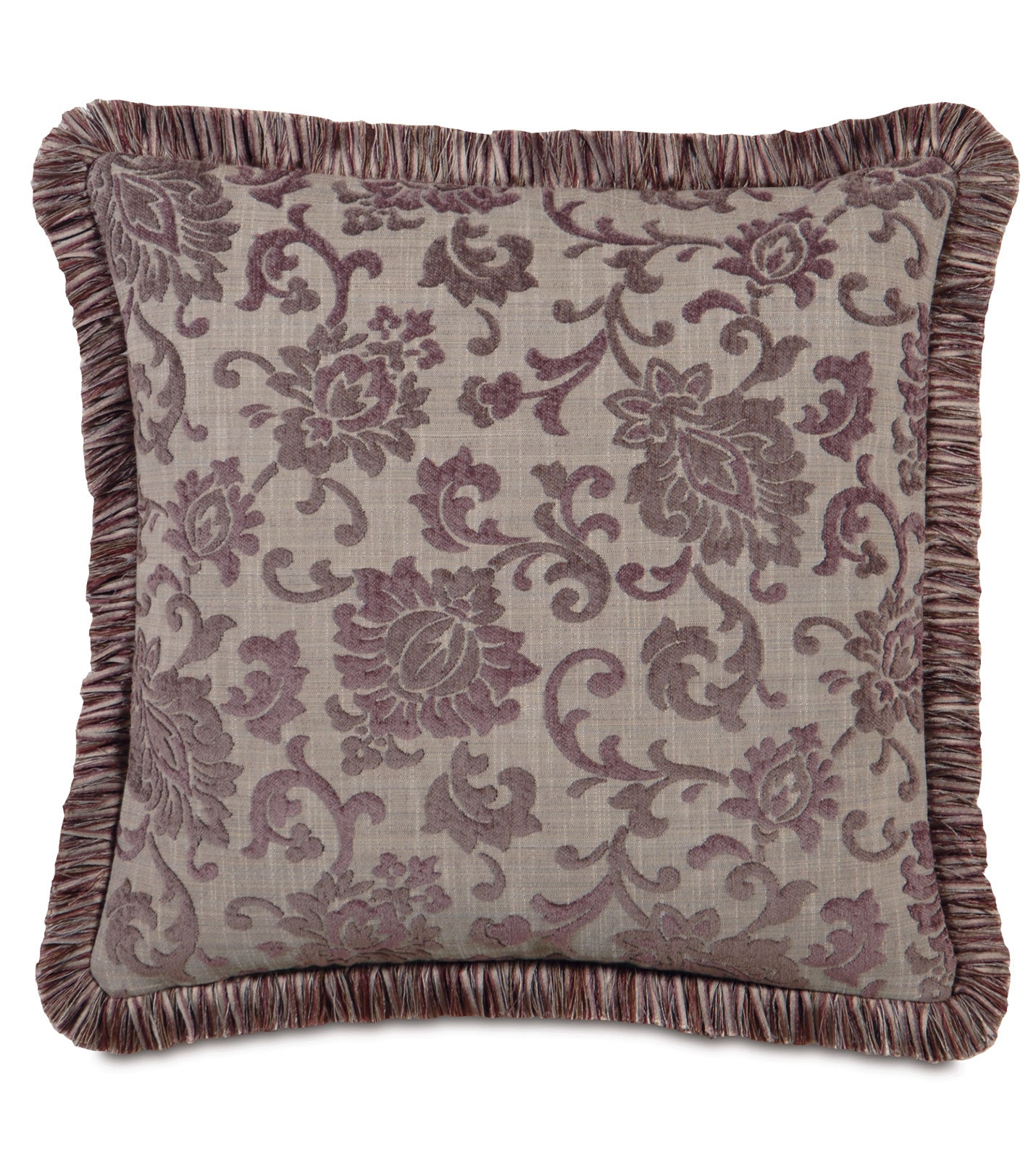• Decorative chenille pillow with a damask pattern in purple