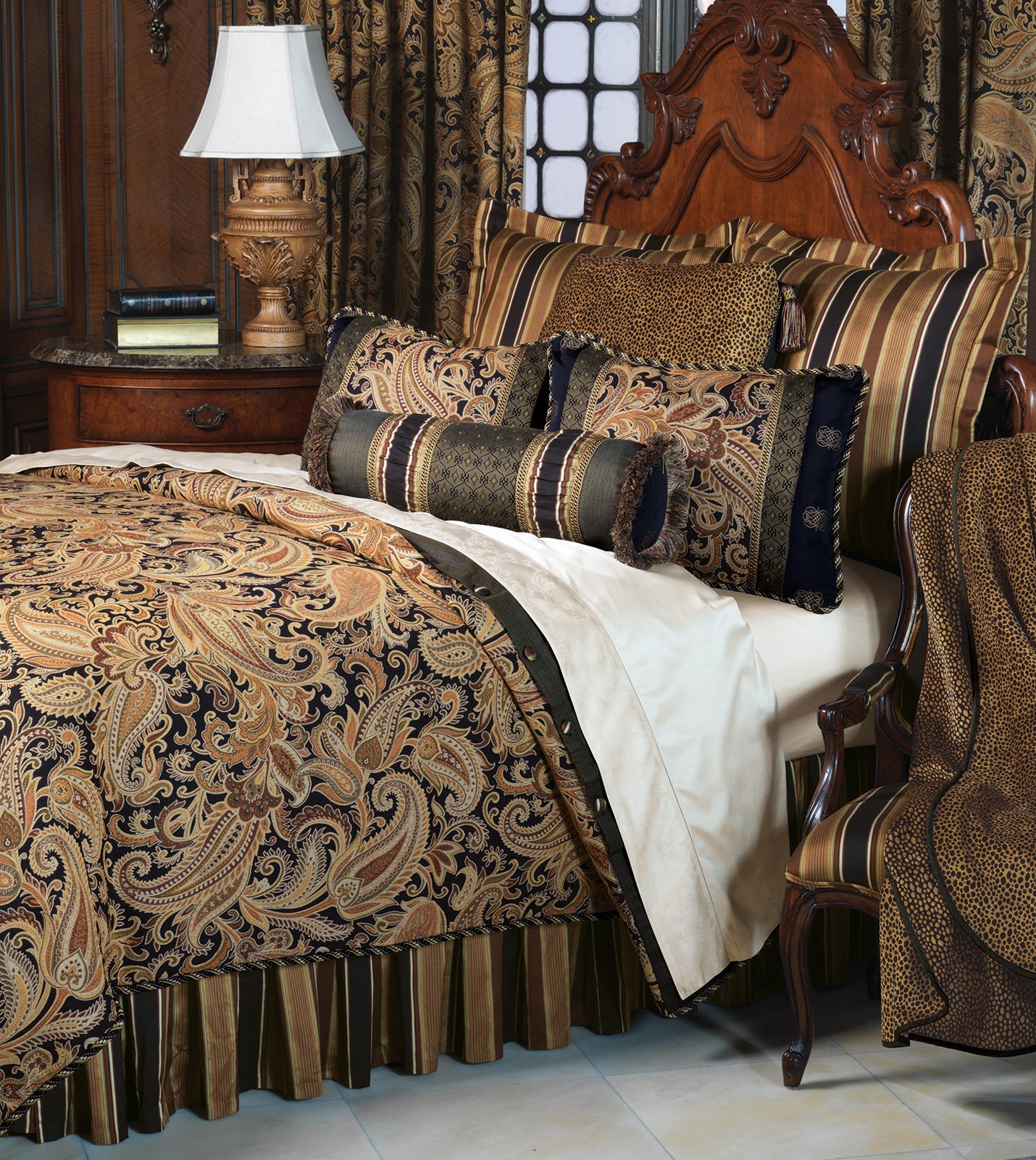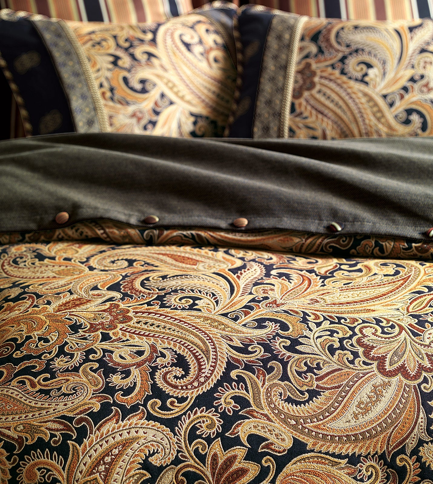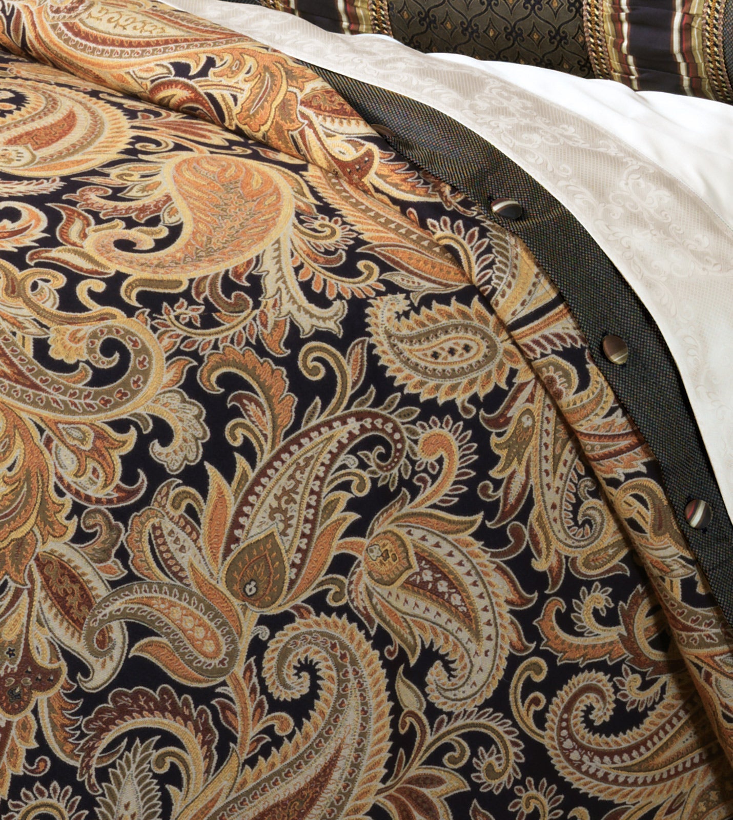 • Elegant paisley duvet cover in deep onyx and gold
