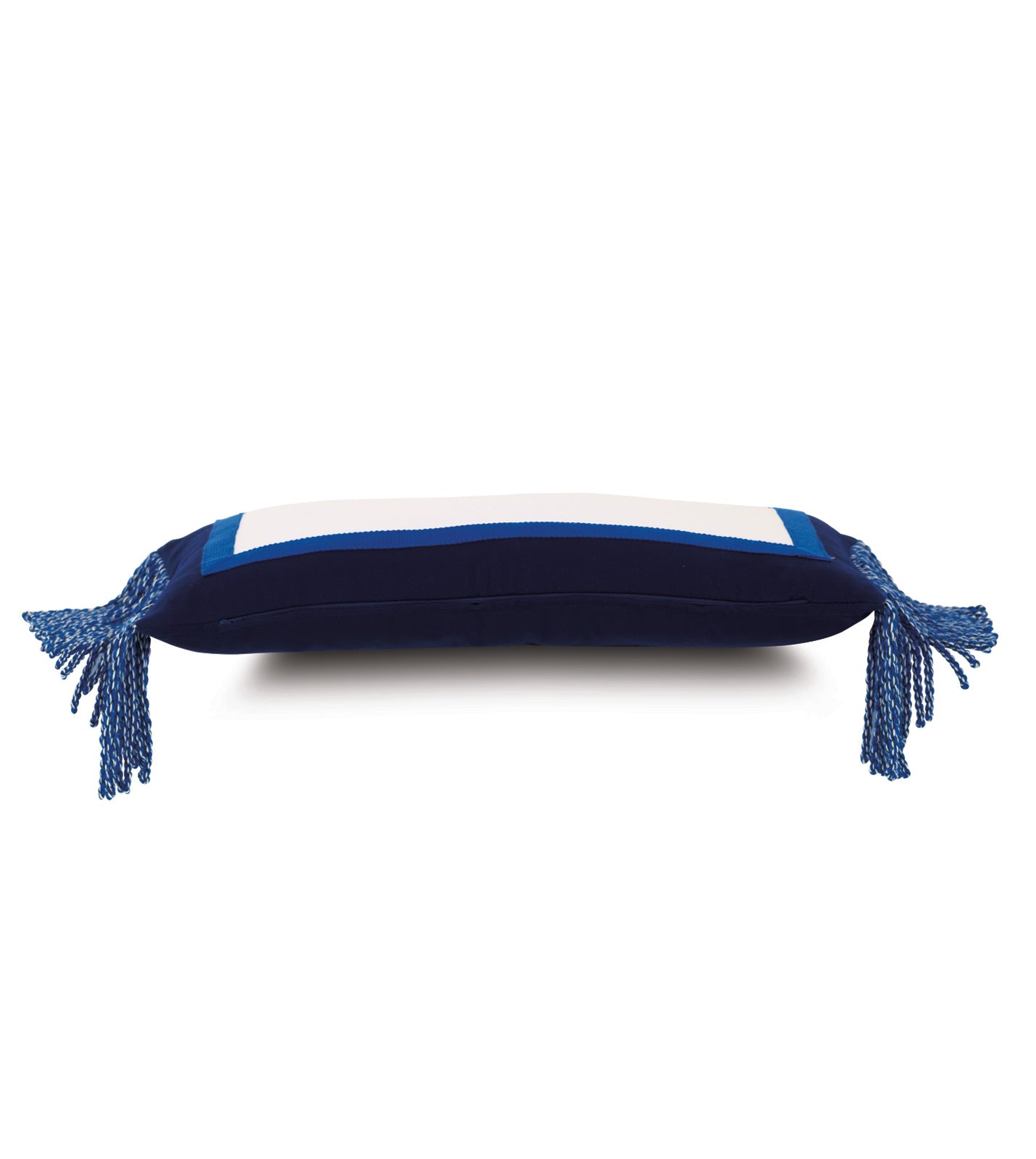 Add a touch of sophisticated simplicity to your outdoor space with this navy blue outdoor pillow, featuring fun bullion fringe on each side.