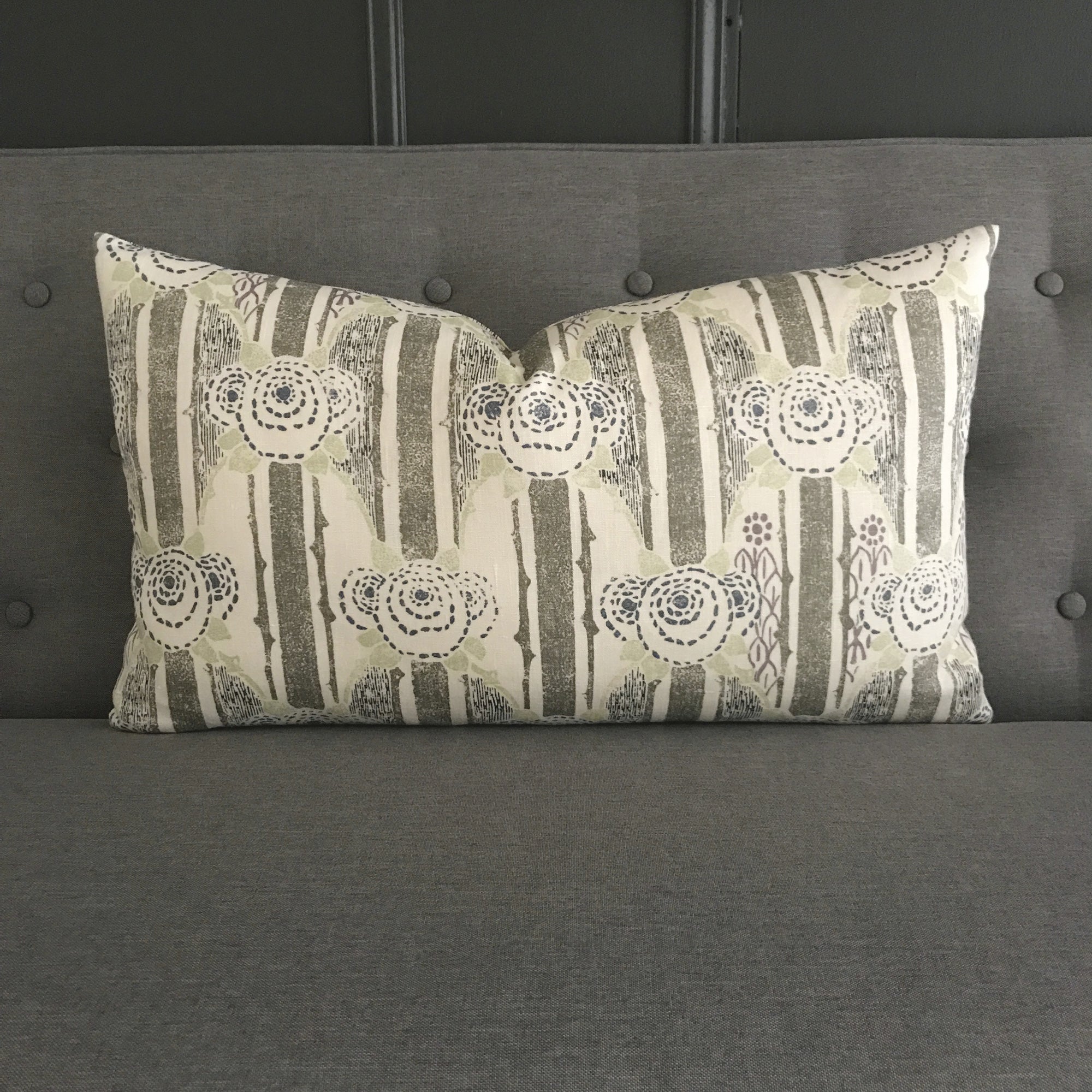 Linen Botanical Abstract Lumbar Pillow Cover 15x26
