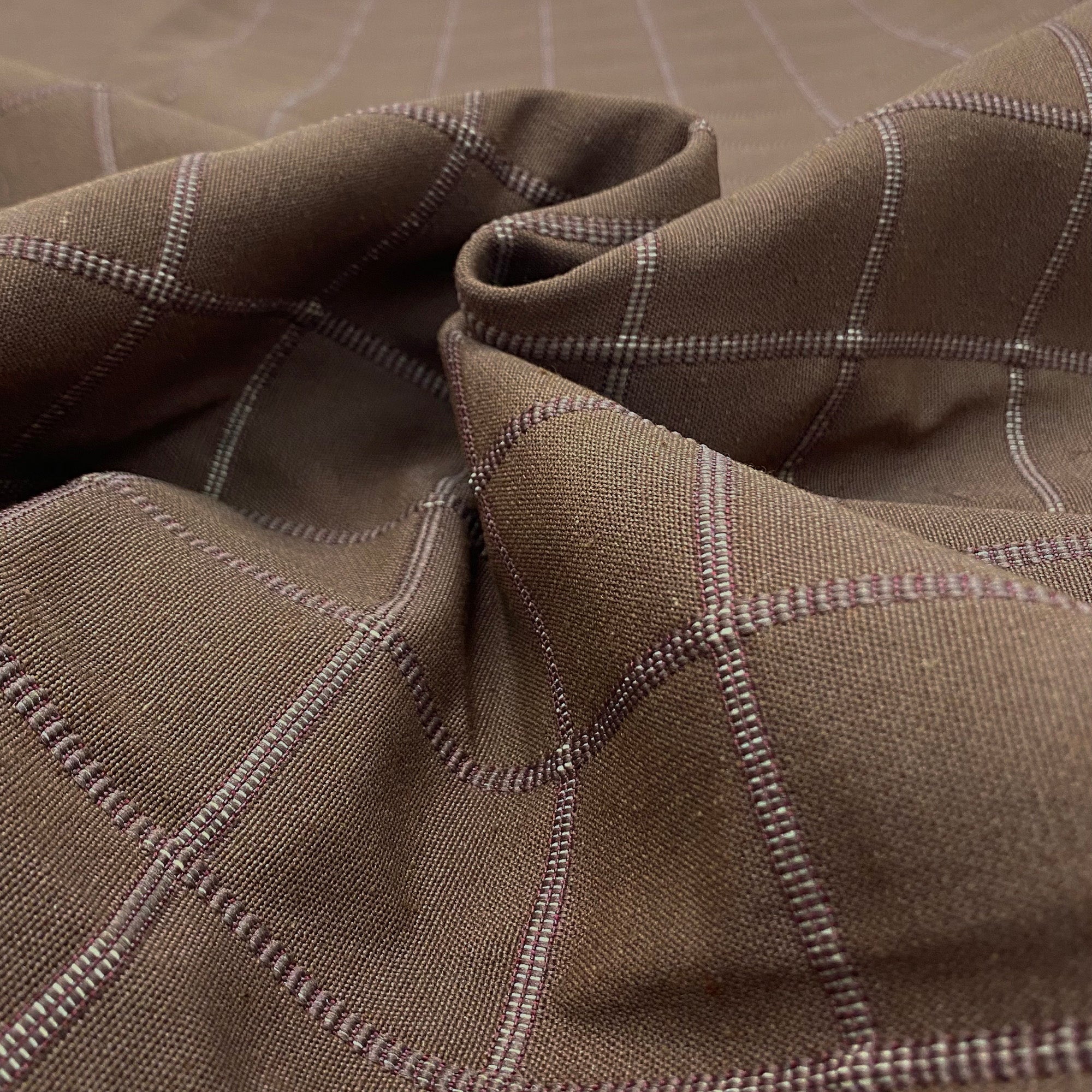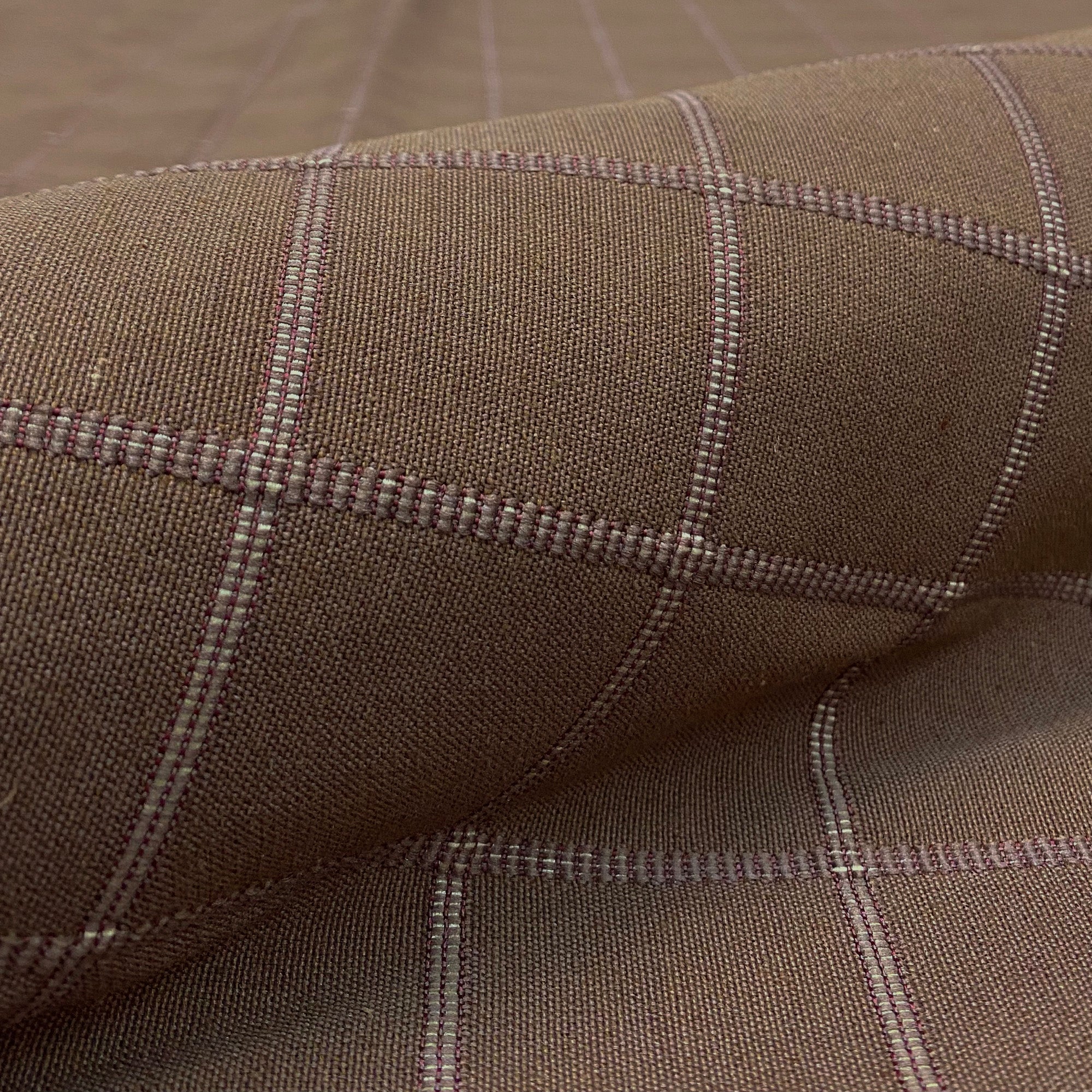 Quilted jacquard upholstery fabric in brown.