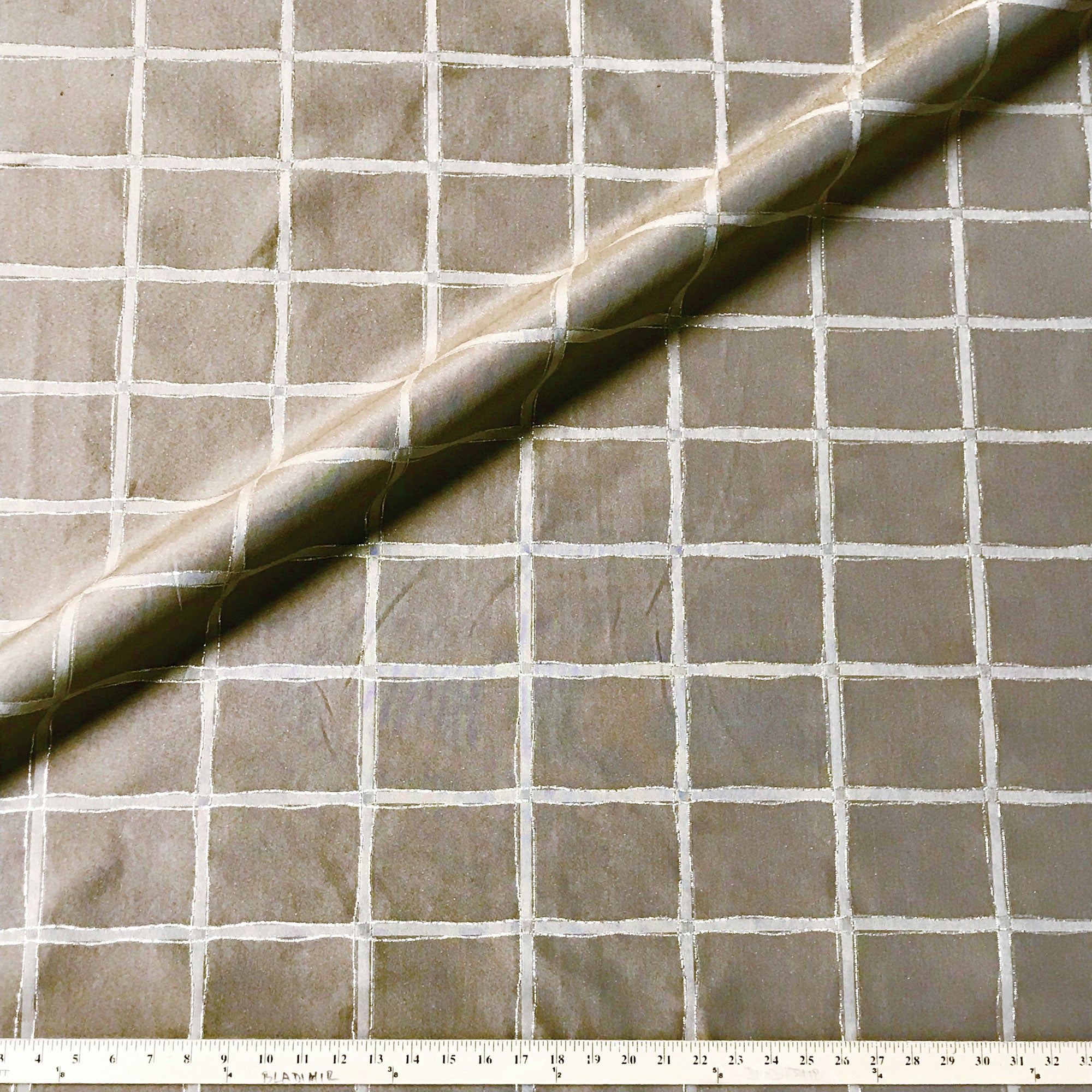Khaki Contemporary Check Shiny Upholstery Fabric 54"