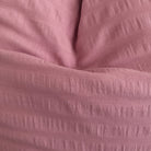 - Blush pink linen blend with horizontal pleating for a soft, textured look