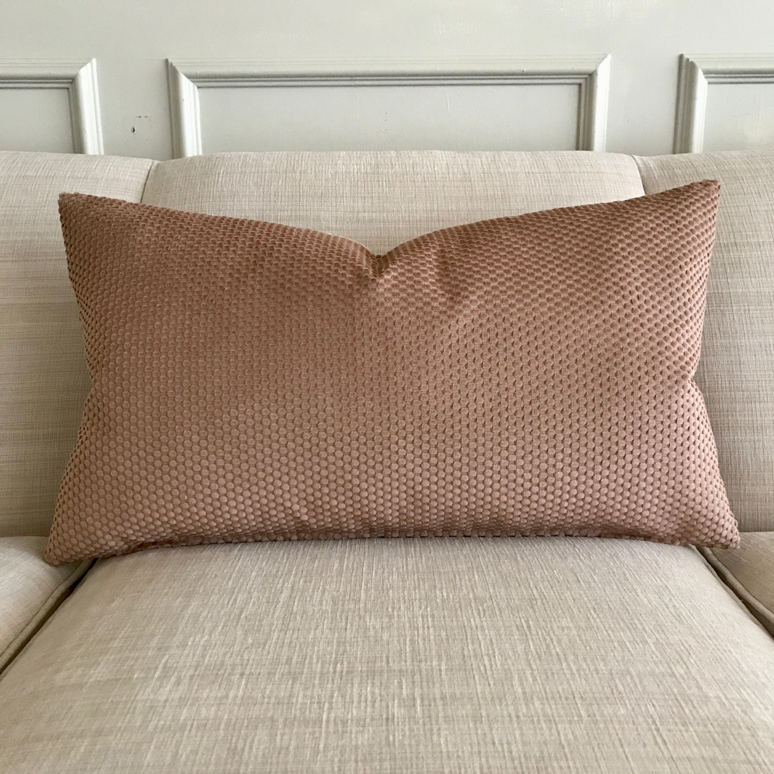 Blush Pink Velvet Polka Dot Lumbar Pillow Cover 15x26
